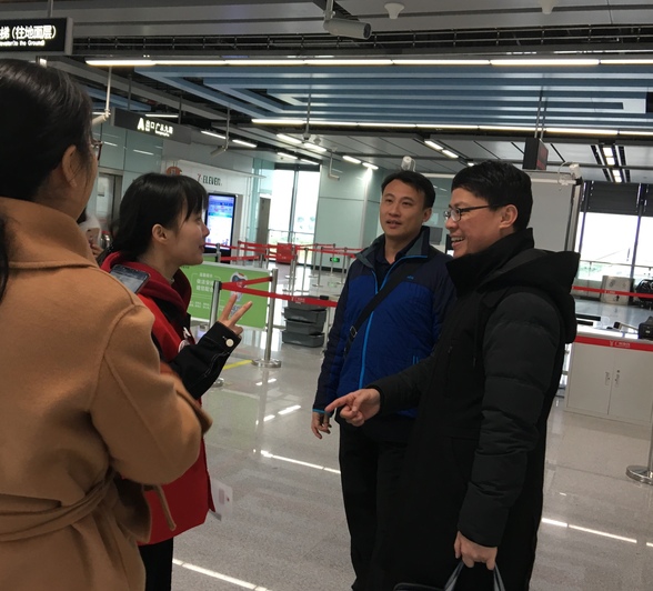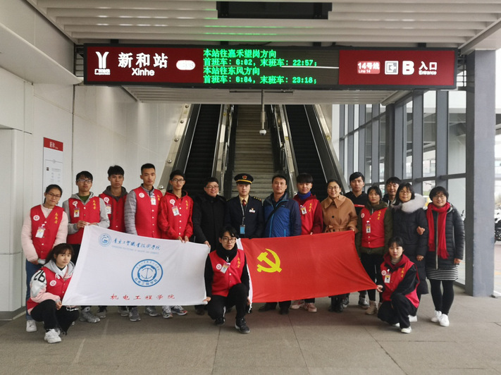 2019年1月2日机电工程学院院长徐勇军和党总支副书记梁超鹏、学工办主任严惠琴、学生第二党支部书记史旭以及院青协指导老师武晓翠去新和地铁站看望了我们的志愿者。尽管天气很冷,站台更冷,但志愿者们坚守岗位,礼貌待人,服务乘客,无私奉献丝毫不受天气影响,温暖了一个又一个乘客的心房。老师们对志愿者们表现出来的精神面貌无比欣慰。新和站的刘站长亲切接待了我们,并为我们详细介绍了新和站的设施及客流情况,介绍了志愿者们的服务情况,并对志愿者们的志愿服务给予了充分的肯定。