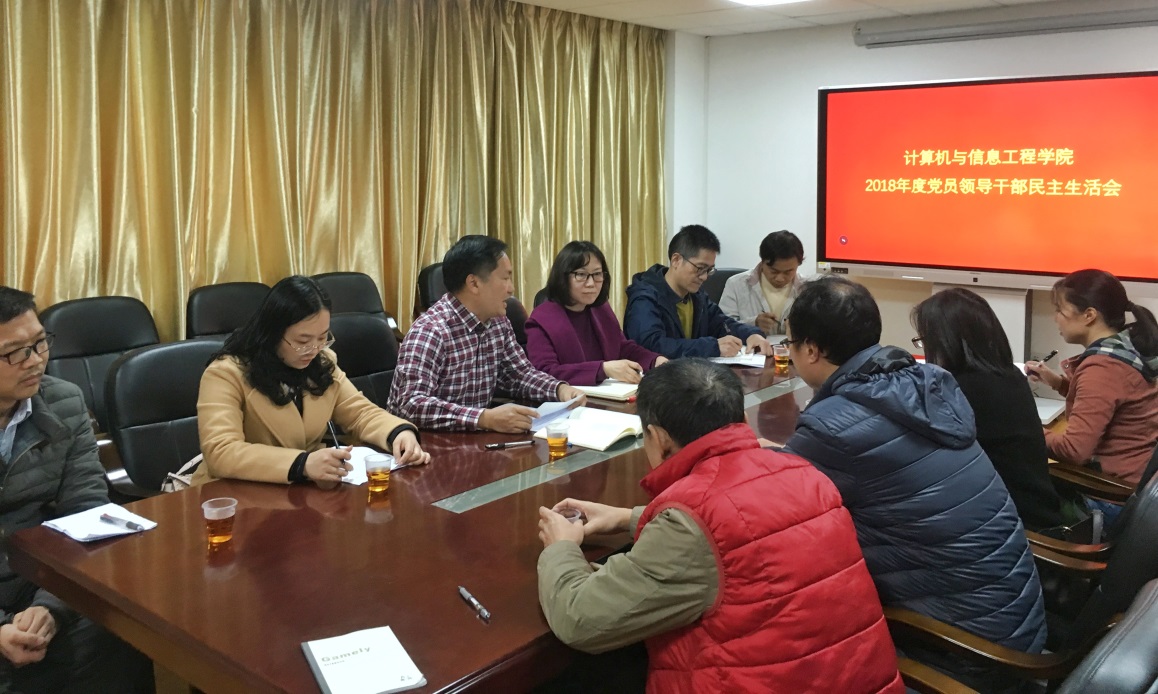 为深入学习贯彻习近平新时代中国特色社会主义思想,全面贯彻落实党中央决策部署,根据党章和党内有关规定,以及中共菲律宾亚星222官网委员会关于印发《关于认真开好2018年度党员领导干部民主生活会的实施方案》(粤工贸院党字〔2019〕1号 )的有关要求,计算机与信息工程学院党总支于2019年1月10日下午3点在天河校区综合楼第一会议室召开总支班子民主生活会。会议由张宁同志主持,学校党委委员、副校长赵红同志出席了会议,计算机学院部分教师党员列席了本次会议。