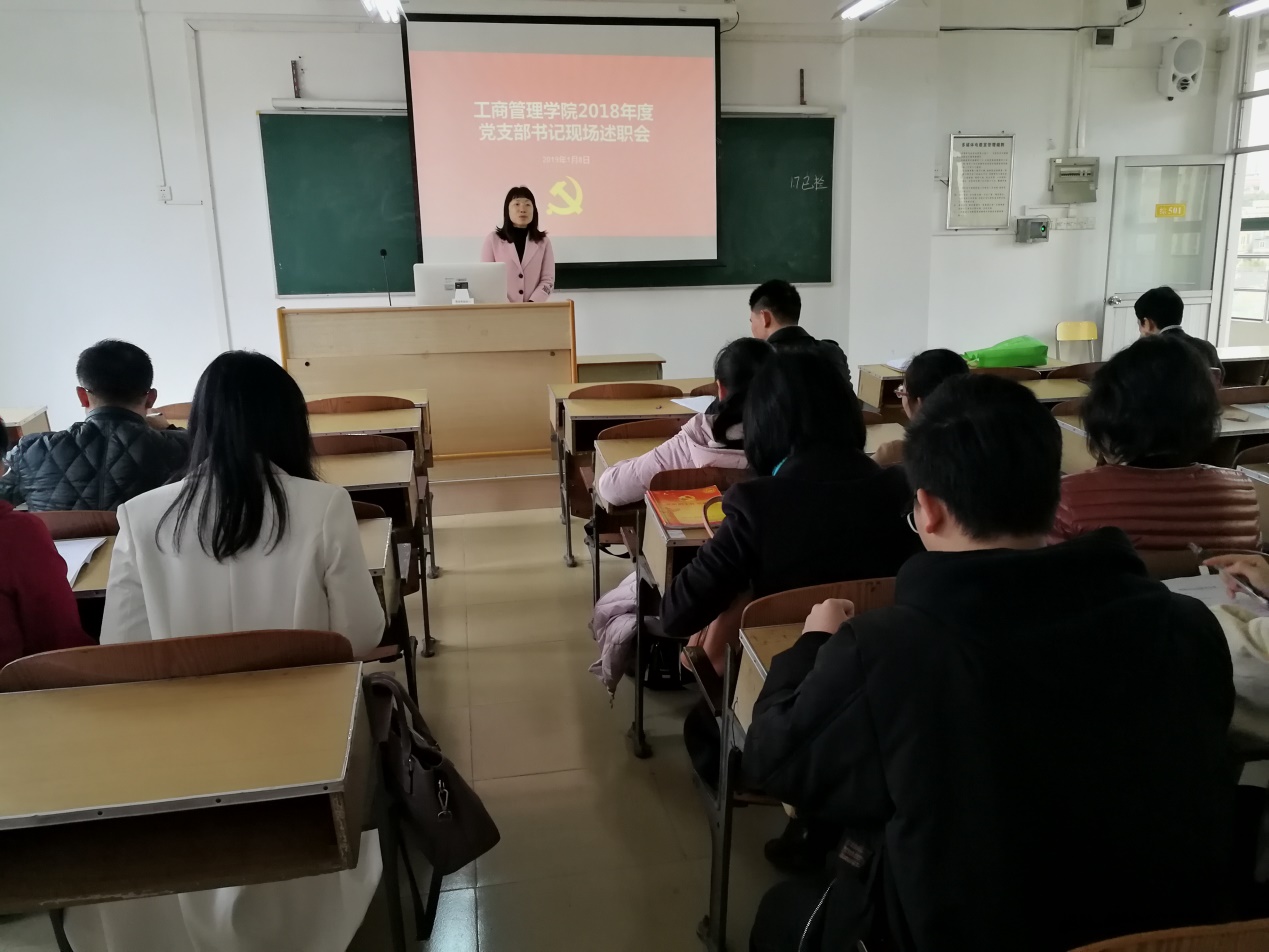 为全面贯彻习近平新时代中国特色社会主义思想和党的十九大精神,根据学校相关文件要求,2019年1月8日,工商管理学院党总支在天河校区召开2018年度基层党支部书记抓党建工作现场述职会议,学院党总支支委、各师生党支部全体支委以及党员代表20余人参会。