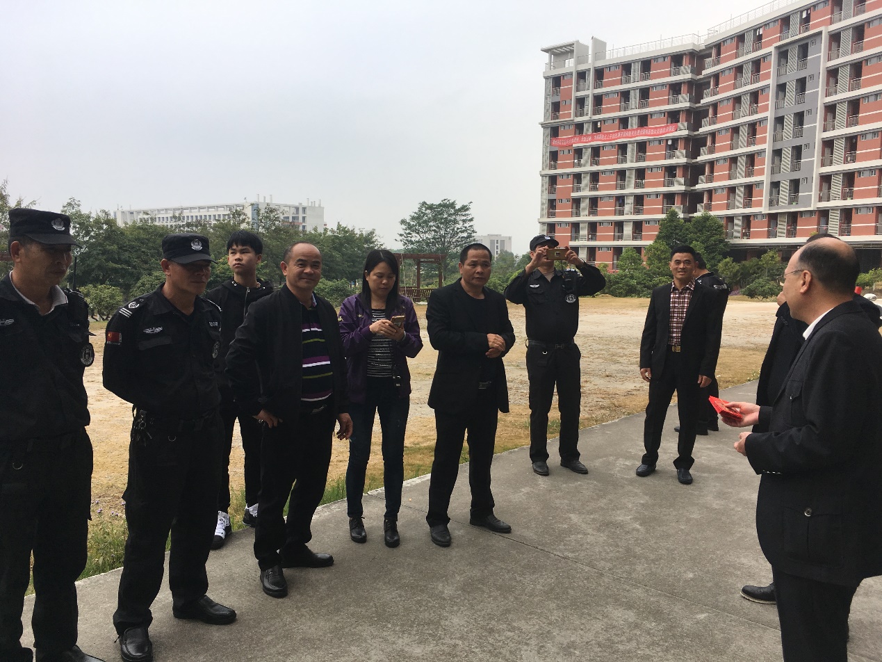 夏韩辉副书记与值班校卫队员、宿舍管理员、物业公司工作人员进行了亲切的交谈,对他们的辛勤工作表示衷心的感谢,为他们送上问候和新春的祝福,并仔细巡查了天河校区宿舍区、教学楼和白云校区教学楼、宿舍区、实训楼等场地,嘱咐工作人员认真履行好岗位职责,确保学校安全稳定。