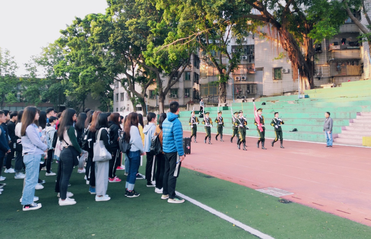 2019年3月4日7:20,计算机学院计算机网络技术专业学子共300多人在天河校区东区足球场举行了以“努力学习,不忘为国家做贡献”为主题的升国旗仪式,参加升旗仪式的还有计算机学院党总支书记张宁和学工办主任代启兵。