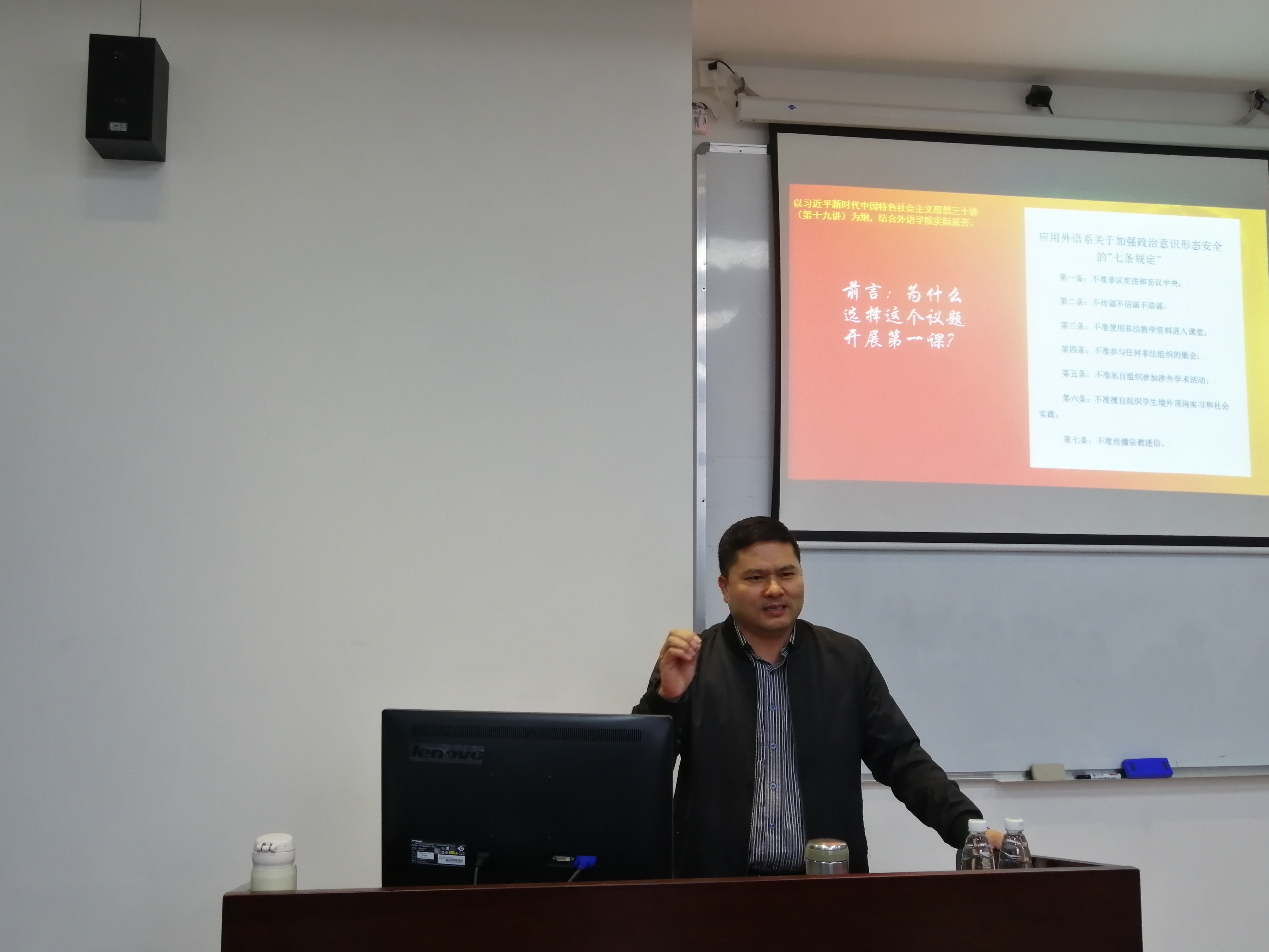 37日,应用外语学院举办了一场“以政治建设为统领,切实加强应用外语学院意识形态安全工作”为主题的党总支书记第一课。学院党总支书记李德富以习近平新时代中国特色社会主义思想三十讲(第十九讲)为纲,结合学院目前实际情况开讲
