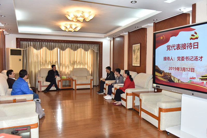 3月12日下午,党代表工作室接待日活动在天河校区举行,学校党委书记汤才同志与来访师生面对面交流。学校党委办公室主任黄雄志、计算机信息与工程学院党总支副书记张艳参加了接待日活动。