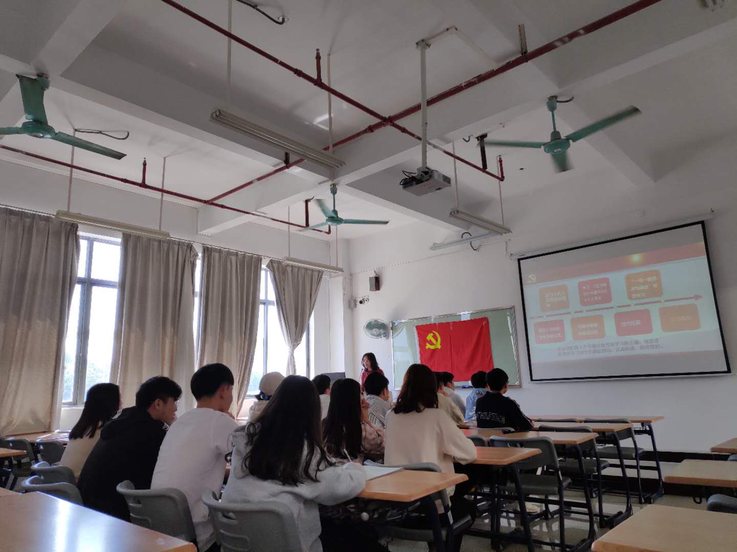 紧接着,党支部各部门负责人逐一介绍了本学期接下来的工作计划以及注意事项。其中党章学习小组部介绍了各党章学习小组挂钩党员的安排以及党章学习的内容;宣传部介绍了推文的创新形式以及通讯稿的格式要求,鼓励同学们积极投稿;组织部介绍了支部的情况和近期党员发展的工作安排,动员更多的同学积极向党组织靠拢;志愿者部介绍了两个志愿服务基地的情况与志愿服务开展时的注意事项,倡议大家积极参与到志愿活动中实现自身价值。