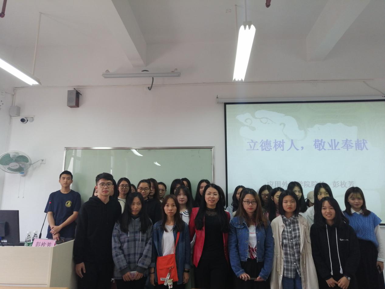 为响应广东省教育厅《关于做好2019年春季学期高校第一堂思想政治理论课工作的通知》318日,应用外语学院党总支副书记、院长彭枚芳讲的思想政治理论第一课“立德树人,敬业奉献”在明德楼一区505正式开讲。全体积极分子及发展对象参加了此次学习。