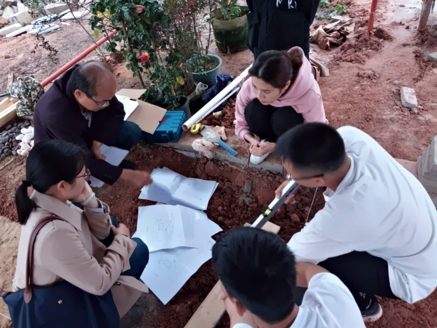 园林景观设计赛项包括景观设计和施工两大内容,综合考验了选手的方案构思、软件绘图、规范施工等专业能力。测绘学院从上学期末开始着手准备,选拔参赛学生,制定训练计划。因备赛时间短,师生主动放弃大部分寒假休息时间到学校开展集训备战,从方案构思到平面绘制、模型创建,从施工工具初步熟悉到修园筑池,各个环节都浸透着参赛师生的汗水。同时,备赛工作得到教务处、基建处的大力支持,解决了施工设备、训练场地、比赛工具等问题,让参赛师生全心投入,解决后顾之忧。