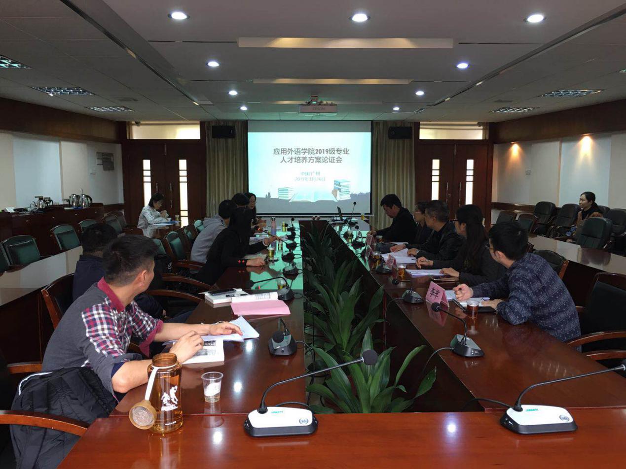 3月26日上午,应用外语学院邀请广州工程职技术职业学院外语与商贸系主任张云勤、广州铁路职业技术学院外语商贸学院院长王友良、广东技术师范大学日语系主任李芊、广州保利假日酒店人力资源经理熊锦、深圳头狼电子商务有限公司董事长朱加宝等专家在天河校区第一会议室举行2019级专业人才培养方案论证会。学院院长彭枚芳、党总支书记李德富、党总支副书记罗春科、副院长杨国民、邓国栋以及各教研室主任与专业带头人等参加了论证会。论证会由彭枚芳院长主持。