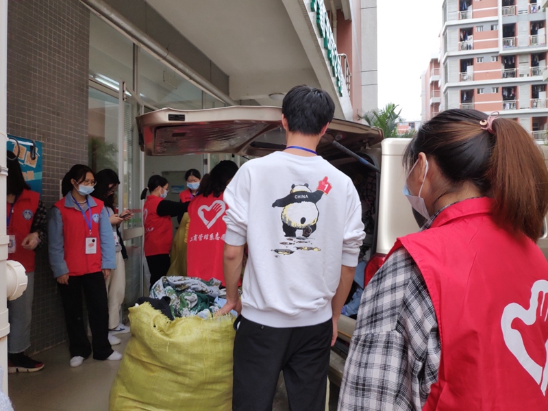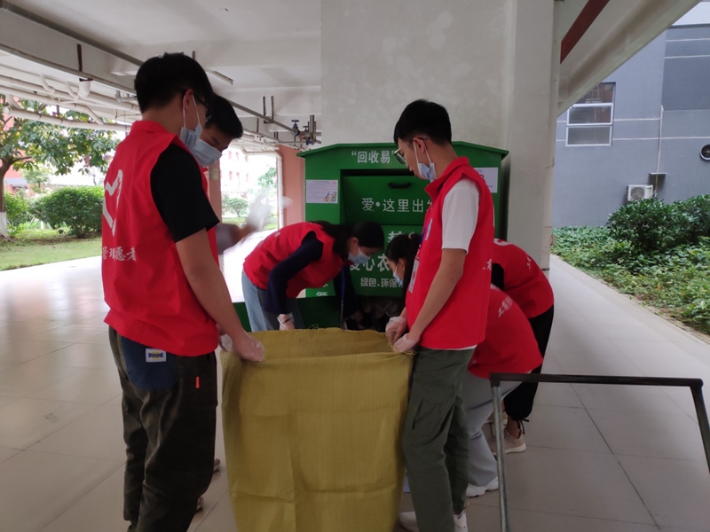 2019年3月26日,一群身穿红色马甲为爱而来的志愿者们,踏上了一次“旧衣回收,送爱去远方”的征程。伴随着缠绵的春雨丝,但衣物回收箱——“绿宝宝”感受到同学们浓浓的爱。爱,是一种无声的语言,只要轻轻一点火花,就能让世界充满温暖。志愿者们将爱心衣物回收箱里满满的爱,一件件收拾出来并整齐的叠放好,装进环保袋里,送往广州市蔚蓝环境保护促进中心。