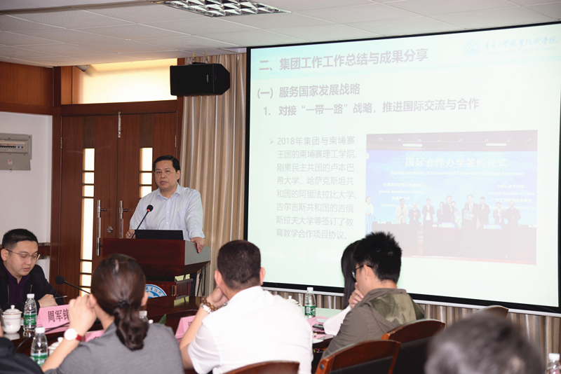 集团理事长、学校校长何汉武向会议做了2018年度理事会议工作报告。从统筹资源共建共享、成为广东省示范性职业教育集团建设单位、打造信息化管理平台等三个方面介绍了集团年度发展总体情况,并从服务国家发展战略、校企协同深化产教融合、校校合作构建现代职业教育体系等方面对集团取得的成绩进行了汇报,并从完善治理结构、健全集团化办学运行机制和资源共享机制、提升综合服务能力、深化产教融合等方面介绍了集团2019年工作计划。