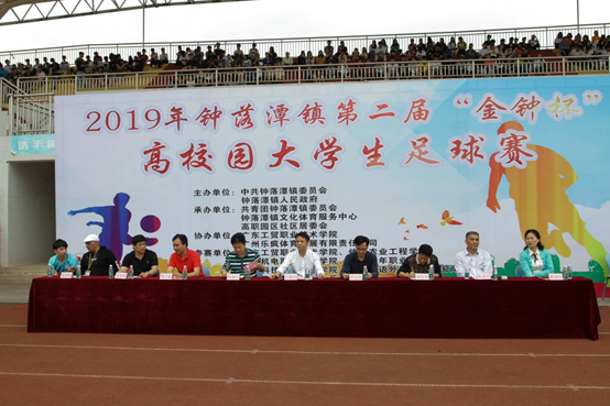 2019年4月3日下午两点,钟落潭第二届“金钟杯”高校园大学生足球赛开幕式在我校白云校区隆重举行,出席开幕式的人员有钟落潭镇镇长刘耀均、白云区团委副书记李光伟、钟落潭镇党委宣传委员黄力新、菲律宾亚星222官网副校长陈珊兴、广州科技科职业技术学院党委书记陈道华、广东机电职业技术学院副校长谢臣英、仲恺农业工程学院体育部主任黄继珍、广东青年职业技术学院工会主席吴海波、广东外语外贸大学南国商学院体育顾问兼教授奈伊姆以及钟落潭镇有关部门负责人、钟落潭镇辖区内六所高校的师生代表,共计1000余人。