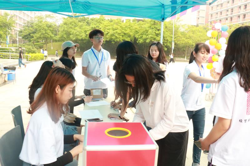 为了贯彻落实《关于常态化开展“活力在基层”主题团日竞赛暨优秀服务型团组织创建活动的通知》《关于实施高校基层团支部“活力提升”工程的通知》《关于加强新时代团的基层建设 着力提升团的组织力的意见》的通知精神,按照“灯塔工程”——广东青年大学生思想引领行动方案统一部署,由学校团委主办、经贸团委、学生会承办的“创意新时代活力扬经贸”2019年度”活力在基层”系列活动于2019年4月18日在子衿广场举办。出席本次活动的老师有党委组织统战部副处级组织员黄昌燕、经济贸易学院党总支副书记(主持工作)王坤明、党总支副书记龚云、副院长方洁、经济贸易学院办公室以及学工办的老师。