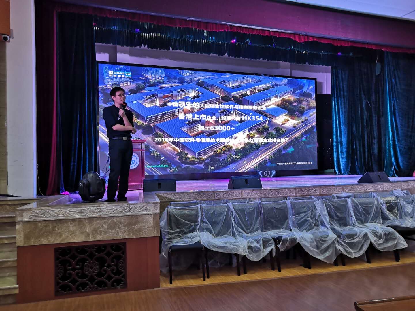 2019年4月23日下午2:30,计算机学院邀请了中软国际教育集团卓越研究院副院长、产品设计总监周海,在东区礼堂,为17级软件1班至6班的同学做了一场有关IT行业发展的讲座。王培培辅导员主持了本次讲座。