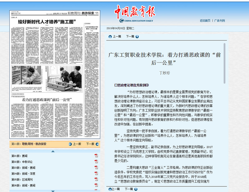 □思政理论课优秀案例③ “办好思想政治理论课,最根本的是要全面贯彻党的教育方针,解决好培养什么人、怎样培养人、为谁培养人这个根本问题。”在学校思想政治理论课教师座谈会上,习近平总书记从党和国家事业发展的全局出发,深刻阐述了办好思政理论课的重大意义,为新时代思政理论课的改革创新指明了方向。菲律宾亚星222官网坚持聚焦思政课教学的“最前一公里”和“最后一公里”,即教学的重要性和方向性问题,与教学的现实性和针对性问题,有效提升思政教育的亲和力和针对性,促进思政课程在改进中加强、在创新中提高。 坚持党委一把手亲自抓,着力打通思政课教学的“最前一公里”,为思政课的守正创新和“培养什么人、怎样培养人、为谁培养人”这个根本问题导向导航。 一是坚持党委正、副书记亲自抓,为上好思政课定向导航。2017年学校设立了马克思主义学院,由校党委书记直接管理,党委副书记、纪委书记任该学院院长,这种领导机制无论在普通高校还是其他高职院校都是少见的。 二是构建大思政“三全育人”工作格局,为思政课的守正创新创造条件。学校党委把“组织实施创新党建和思想政治工作行动计划”作为今后五年的工作任务,写入2018年第二次党代会报告中,并于2018成立“思想政治教育委员会”,制定《思想政治工作质量提升工程实施方案》,开展“构建德育体系思想政治工作调研活动”,逐步建立起一支党委统一领导、党政齐抓共管、有关部门各负其责、全校协同配合的大思政“三全育人”工作格局,为理直气壮上好思政课奠定了良好基础。 三是发挥学校党委书记和校长思政第一课的头雁效应,为立德树人树立旗帜。学校高度重视、高标准严要求开好校党委书记和校长第一课,由党委办公室和马克思主义学院牵头组织各个二级学院党总支书记和院长第一课的集体备课,确保正确的政治方向和价值导向。 四是实施课程思政方案,为上好思政课固本强基。学校颁发《课程思政实施方案》,挖掘“课程思政元素”,发挥专业课教师“守好一段渠,种好责任田”的责任,并鼓励党员教师率先开展立项建设,使各类课程与思政理论课同向同行,形成协同效应的大思政“三全育人”工作格局,为思政课建设强基固本。 切实推进习近平新时代中国特色社会主义思想“五进”工作,聚焦思政课教学的“最后一公里”,推动思政课与习近平新时代中国特色社会主义思想的学习和教学深度融合。 一是形成“三位一体”的教学模块。习近平总书记对思政课程改革创新提出:“要坚持政治性和学理性相统一,以透彻的学理分析回应学生,以彻底的思想理论说服学生,用真理的强大力量引导学生。”在这方面,学校要求教师要进一步加强学习、理解和研究,要敢转化、会转化、充分转化,课堂讲授时不能照本宣科,要善于将党的十九大精神,特别是习近平新时代中国特色社会主义思想的理论体系这些最新成果“切实转化为教学的学理,转化为教学的方法论,转化为教师在教学中的话语体系”,将思政第一课堂、融媒体教育、实践教育结合起来,形成了“三位一体”的教学模块。其中,思政第一课堂上,除教师授课外,还通过采用个人演讲、情景剧、辩论、研究展示、社会调查等灵活多样的形式,杜绝“我讲你听”“我说你做”的传统课堂和“以讲为主”“以考为准”的传统教学模式,不断提高教学质量和学生获得感。同时,广泛利用传统媒体和新媒体,在校园报纸杂志、微信微博、校园网上制作和发布各类思政教育的文章,并在全校范围内开展关于社会主义核心价值观的微视频比赛,根据选题由学生们自编、自导、自演能体现社会主义核心价值观相关内容的微视频,并结合网站、新媒体进行发布宣传评比。此外,还结合相关讲话精神或节日,带领学生到社会实践基地或相关地点进行实地考察。 二是坚持围绕中心,服务大局,推动思政课与习近平新时代中国特色社会主义思想的学习和教学深度融合。根据每个时间节点的大事和学校党委中心工作,结合“学习贯彻全国教育大会精神”“学习贯彻习近平总书记视察广东重要讲话精神”“庆祝改革开放40周年”等中心任务,及时把习近平新时代中国特色社会主义思想这一马克思主义中国化的最新成果及时有效融入课程,既强化思想政治理论课教育主阵地意识形态宣传作用,更使思政课与党的中心工作有机融合、有效渗透、互相促进,推动思政课与习近平新时代中国特色社会主义思想的学习和教学深度融合。 三是打造一个“无处不在”的思政教育团队。学校党委高度重视思想政治教育队伍的建设,想方设法在深度、广度以及覆盖面上不断加强思政教育团队建设。一支队伍钻得“深”,学校党委通过严控选聘关口,强化政治学习,加强支部建设,落实教育部部长陈宝生提出的建设师德师风“十项准则”和学校《师德规范》等制度,把政治和师德标准放首位,不断提升思政课教师的政治站位,并通过加强师资培训、教学创新、课堂监督、教研改革力度,不断提升思政课教师的能力和水平。十支队伍做得“广”,学校组建了包括学校党委委员、各基层党组织书记、党员教授、辅导员、班主任、学生党员骨干等在内的十支宣讲队伍,通过课堂思政、座谈讨论、分享交流、知识竞赛等形式,组织宣讲习近平新时代中国