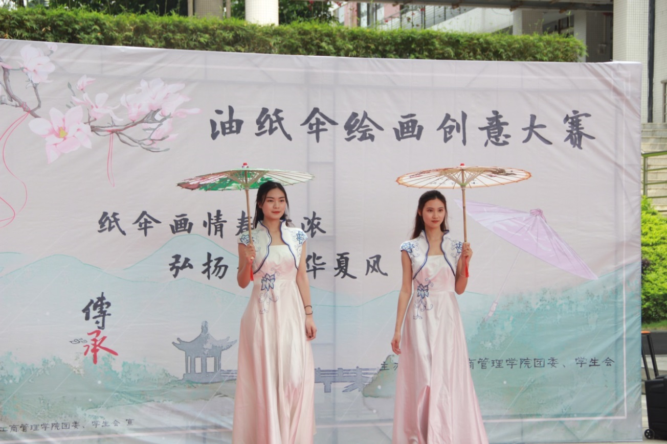 为坚定文化自信,积极引导学生全面发展,营造有利于大学生健康成长成才的氛围,工商管理学院于4月23日下午在白云校区明德楼格物致知广场举办“纸伞画情春意浓,弘扬传统华夏风”油纸伞创意绘画大赛。出席本次活动的嘉宾有工商管理学院辅导员韩天瑶、罗福周、黄李琳、李佳凝、工商管理学院团委、学生会各部门全体成员及参赛选手共200余人。