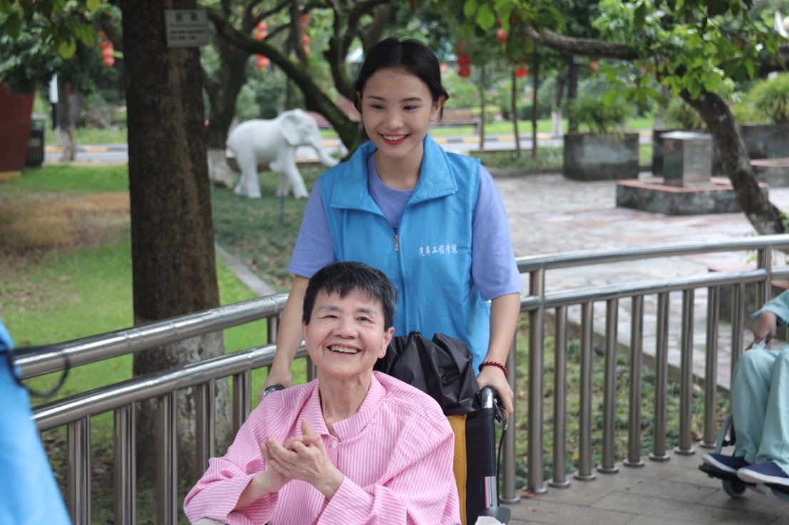 这次活动采用一对一的方式,即一个志愿者对接一个老人。负责人将志愿者们分配到了各个楼层邀请老人们前往慈慧楼大厅集合,随后开始今天的游园之旅。本次游园的路线是:慈慧楼—聆心花园—颐养园花园—金鱼池—慈恩楼—慈慧楼。在游玩的过程中,志愿者们陪着各自负责的老人边走边欣赏风景,有时候停下脚步,驻足池塘边,陪着老人聊天或者看着乌龟金鱼在水中游泳;有时候在休息区停下休息,喂老人吃些饼干喝些水;陪老人前往慈恩楼参加小游戏与抽奖活动。看到老人们脸上都洋溢着幸福和开心的微笑,志愿者们心里由衷的感到满足和愉快。随后,志愿者们将老人们送回到慈慧楼,结束了今天的游园活动。