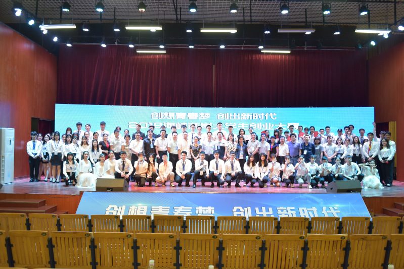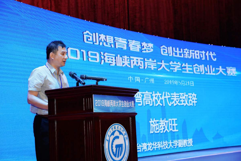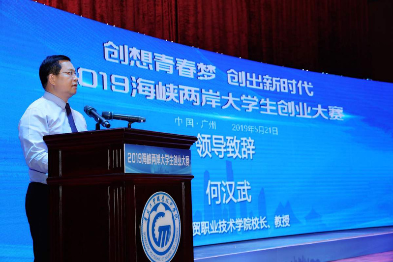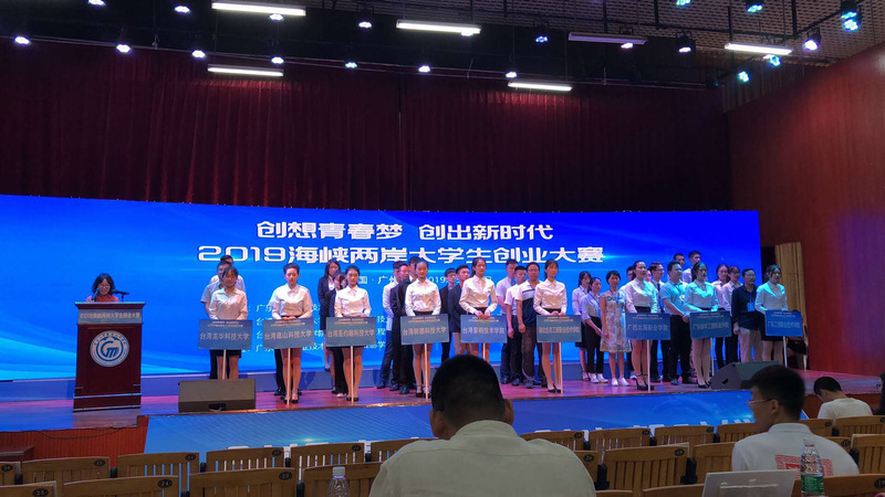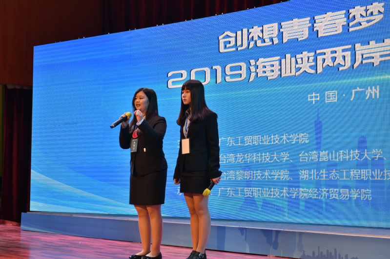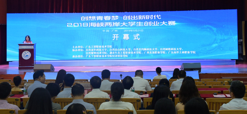 为进一步培养和提升青年学生的创新精神、创意思维和创业能力,营造校园浓厚的创新创业氛围,交流展示海峡两岸大学生创新创业教育成果,2019年5月21日下午,由我校主办,台湾龙华科技大学、台湾圣约翰科技大学、台湾树德科技大学、台湾黎明技术学院、台湾崑山科技大学、湖北生态职业技术学院、广西北海职业学院、广东南华工商职业学院等海峡两岸8所高校承办的2019海峡两岸大学生创业大赛在我校白云校区演艺厅隆重举行。本次比赛的主题为“创想青春梦,创出新时代”。