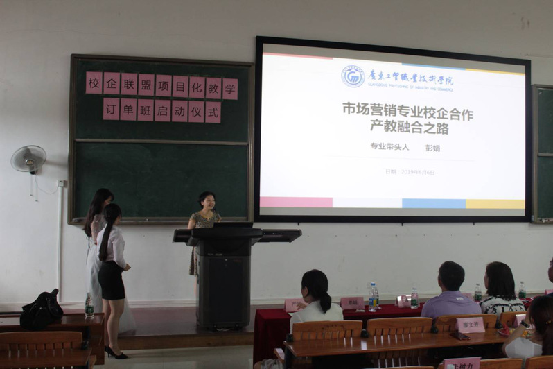 为贯彻落实《国务院关于印发国家职业教育改革实施方案的通知》(国发〔2019〕4号)精神,促进产教融合校企“双元”育人,2019年6月6日,经济贸易学院市场营销专业在白云校区隆重举行了校企合作联盟系列活动,旨在促进校企合作双方增进互信、深化合作,亦为2017级市场营销专业180名即将参与项目化教学的同学铺路。