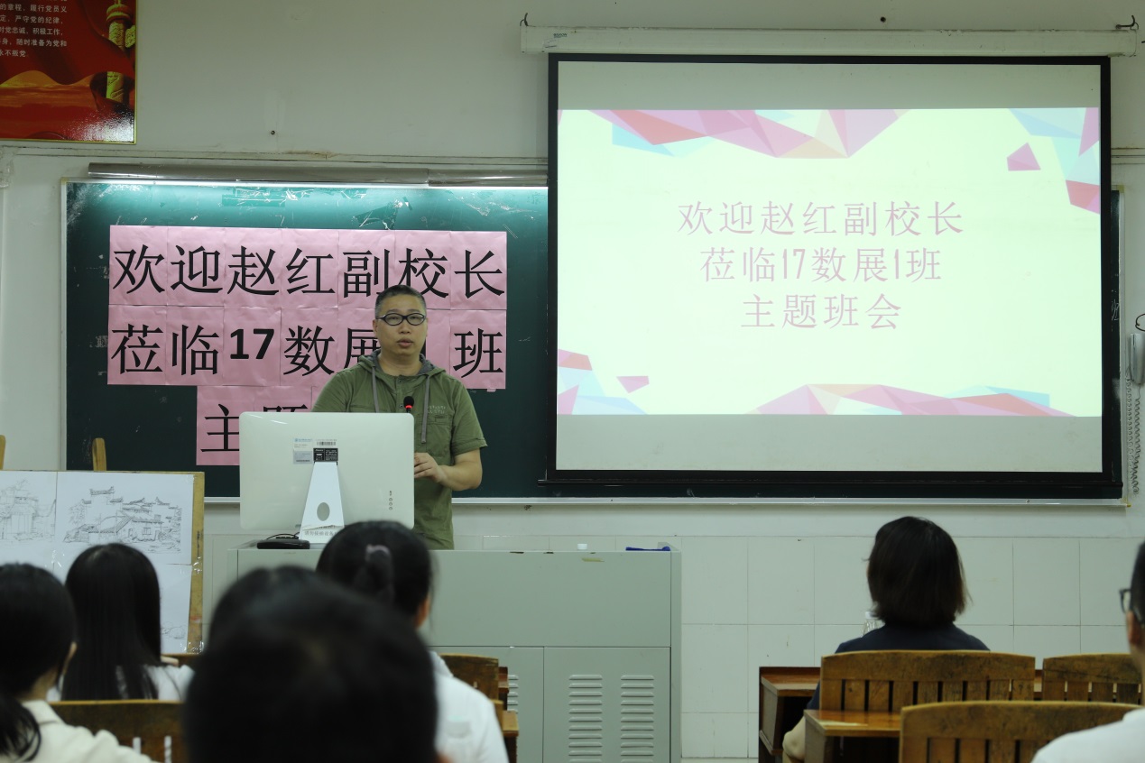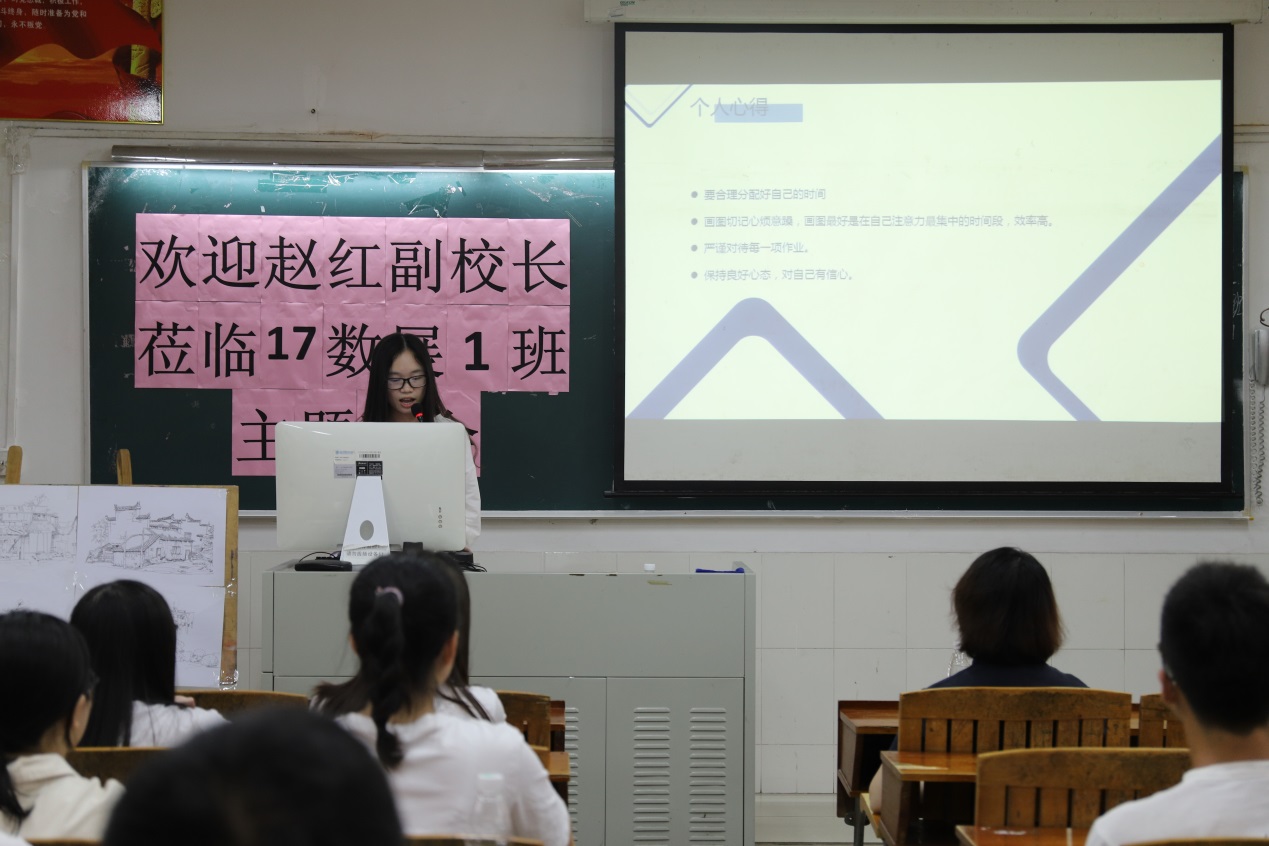 为贯彻落实中央和省、学校的相关文件精神,积极开展学校领导深入基层联系学生工作。学校党委委员副校长赵红于2019年6月11日参加了计算机与信息工程学院17数字展示技术1班在教学楼103举行的“不忘初心,破浪前行”的主题班会,参加本次会议的领导有:计算机与信息工程学院党总支书记张宁、计算机与信息工程学院院长余棉水,以及17数展1班的全体同学,班会由张宁主持。