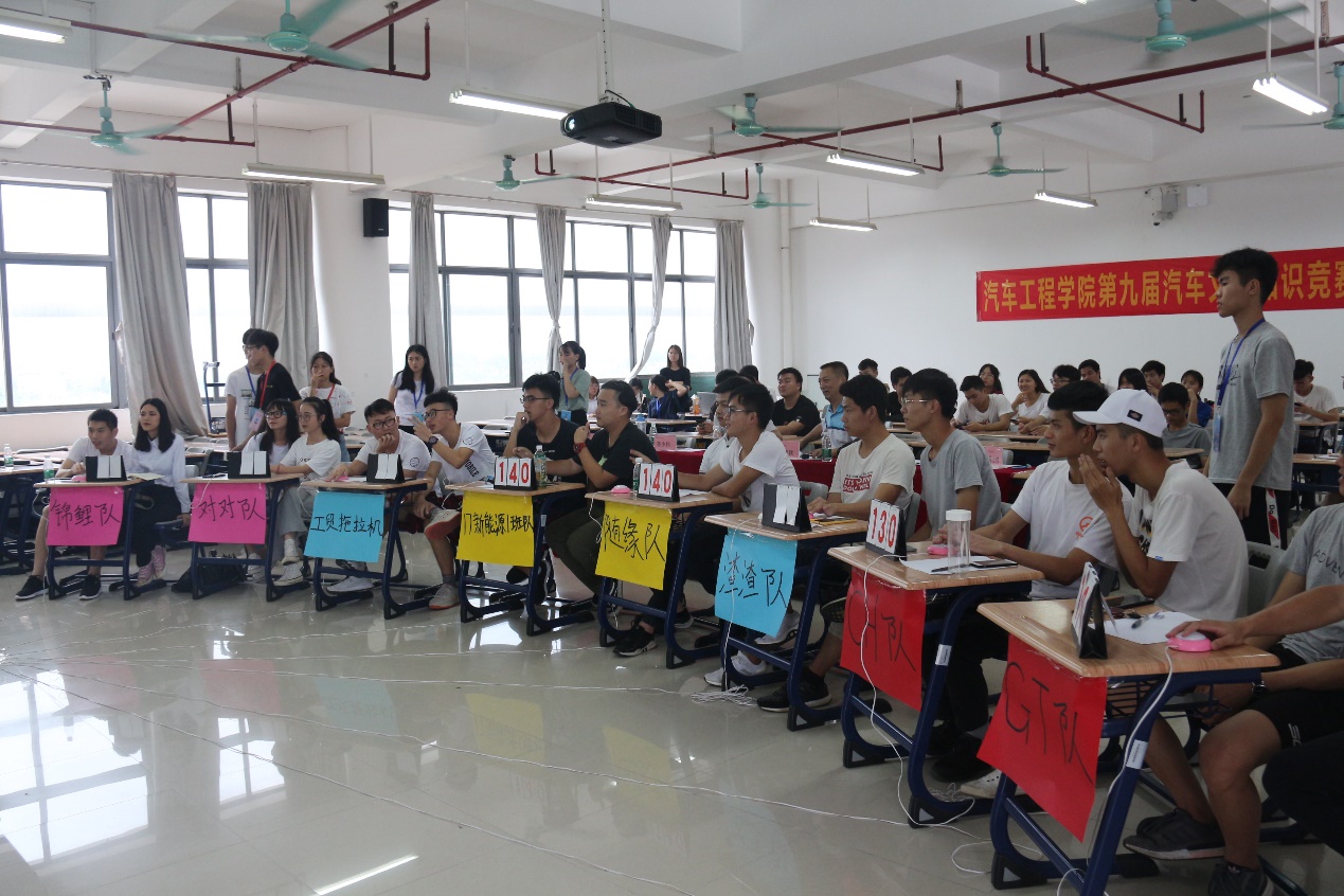 为了弘扬汽车文化,激发同学们对汽车科技和文化的探索精神,提高学生综合职业素质,引领学生践行“党的十九大”精神,汽车工程学院于2019年6月4日下午在白云校区明德楼2区502举办第九届汽车文化知识竞赛决赛,本次竞赛由汽车工程学院党总支主办,汽车工程学院团委学生会、汽车技术服务与营销教研室承办,汽车协会协办。出席本次活动的嘉宾与评委有汽车工程学院副院长潘梦鹞,郇锐铁老师,钟玉灵老师和辅导员陈宏伟老师。