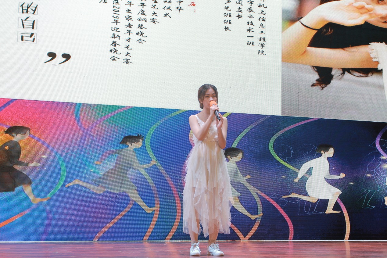 接着,活动迎来了激动人心的“星能”环节,选手们同台竞技,用歌舞、朗诵、器乐演奏等多种形式展现青春的梦想与激情。部分选手进行了风格各异的演讲朗诵,如校团委的李艳以《改革铸就辉煌,奋斗打造祖国未来》为题述说祖国改革开放以来的成就,工商管理学院的谭诗妍以《多走一步遇见更好的自己》为题展示星青年努力奋斗的一面,测绘遥感信息学院刘思慧朗诵《号角》向世界大声宣告华夏儿女举起中国梦的誓言,经济贸易学院苏洁怡朗诵《可爱的中国》展现对祖国的热爱;亦有选手亦有以舞蹈献礼中华人民共和国成立七十周年的选手,如汽车工程学院的范婷婷用舞蹈《时代的芳华》展现新时代的青春,绽放华丽的激情,应用外语学院杨胜薇以活泼《苗朵》展现苗族少女的活泼可爱;更有以歌声激发同学们争做向上向善新青年的热情,如计算机与信息工程学院黄惜铃以歌曲《给未来的自己》鼓励同学们做“三有”青年,不忘初心,牢记使命,为更好的未来而奋斗,计算机与信息工程学院何志华以一首《向往》唱出华夏儿女对新时代美好生活的向往,汽车工程学院杨成涛以吉他弹唱《海阔天空》展现星青年的追梦之旅,引发全场高潮;另有工商管理学院方东耿以书法配合竹乐轩助演弘扬传统文化、共写新时代,测绘遥感信息学院黄忠楠以长号演奏《当那一天来临》配合男声合唱展现中国军人顽强拼搏,勇往直前的威武风采。每一个选手都奉献出自己最为精彩的表演,现场掌声不断,观众们时而为选手拍掌伴奏,时而为选手举起手机灯光摇摆,时而为选手们呐喊助威,全场的比赛气氛达到了最高潮。