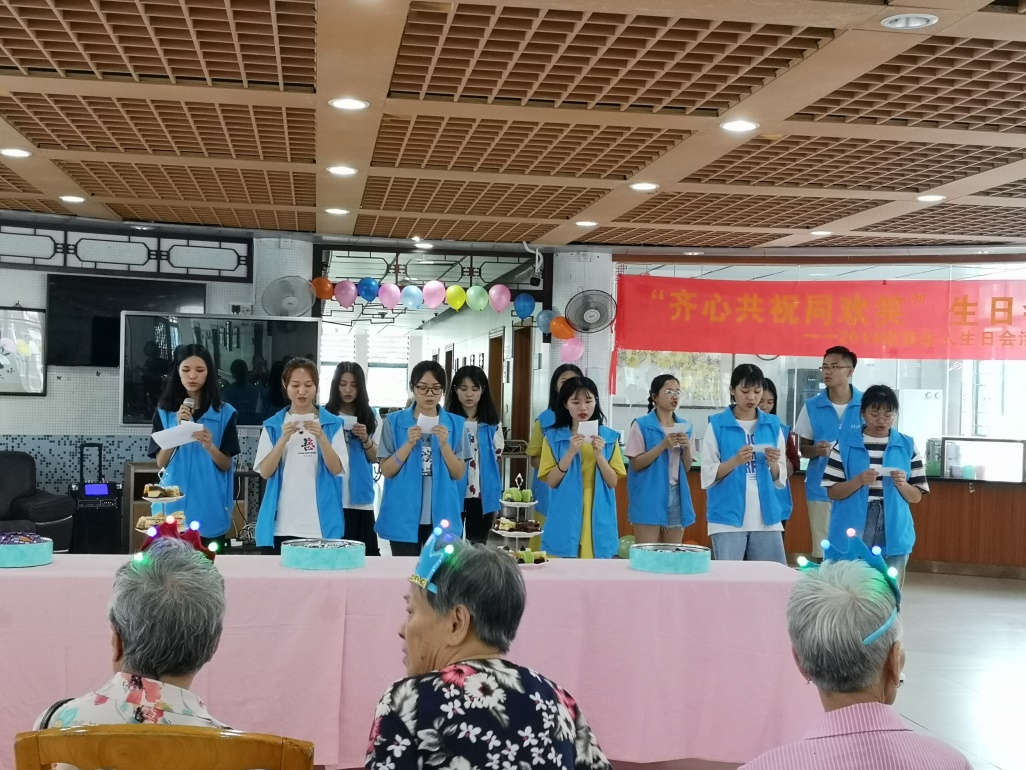为贯彻落实学习党的十九大精神、习近平新时代中国特色社会主义思想和“不忘初心、牢记使命”主题教育会议精神,秉承尊老敬老爱老孝老的光荣传统,倡导大学生党员和入党积极分子用志愿行动践行社会主义核心价值观,献礼新中国成立七十周年。2019年6月20日,汽车工程学院学生党支部在我院党总支的指导下,携手紫藤文学社和拉拉队前往广州市老人院开展以“曙光辉映夕阳,爱心温暖人间”为主题的志愿活动,协助老人院慈慧楼举办2019年第二季度生日会。