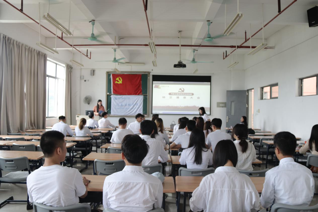 2019年6月25日上午,汽车工程学院学生党支部在明德楼一区315召开预备党员转正大会,对张俊奇等1名预备党员的转正申请进行讨论。会议由支部书记刘彩云主持,出席本次会议的有党总支书记彭卫东、党总支副书记欧敏、以及支部的正式党员和预备党员。