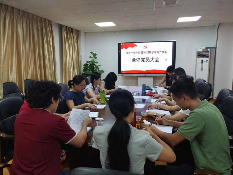 6月25日下午,经济贸易学院全体教职工党员在天河校区西区第一会议室召开党员大会。会议由党总支副书记王坤明(主持工作)主持。
