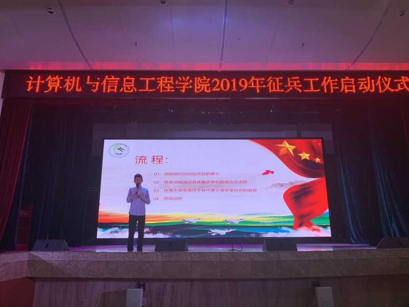 为响应国家号召,广泛开展大学生征兵宣传工作,鼓励更多大学生投身军营,计算机学院于6月25日在天河东区礼堂举行大学生征兵报名启动仪式。计算机学院党总支书记张宁、副书记张艳和三个年级的学生代表参加了本次启动仪式,会议由计算机学院辅导员苏建荣主持。
