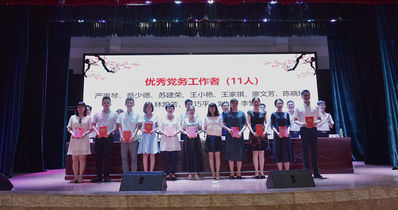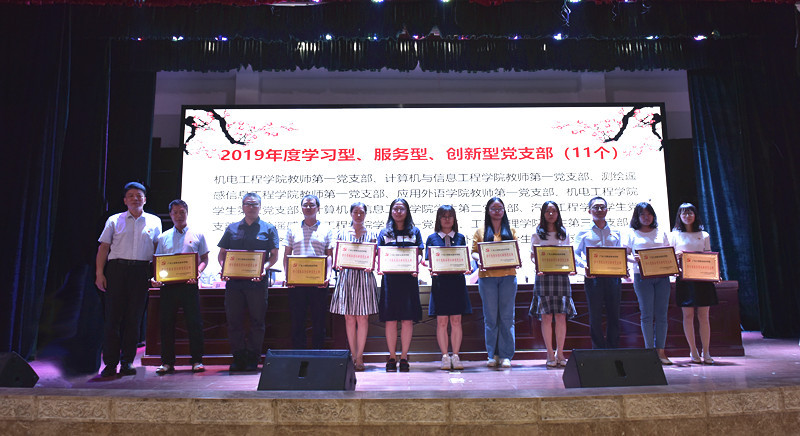 会上,夏韩辉同志宣读了《关于表彰2018-2019学年先进基层党组织、优秀共产党员、优秀党支部书记和优秀党务工作者的决定》;陈珊兴同志宣读了《关于表彰2018年优秀“书记项目”的决定》;赵红同志宣读了《关于命名2019年度学习型、服务型、创新型党支部的通知》。共有8个先进基层党组织、58名优秀共产党员、10名优秀党支部书记、11名优秀党务工作者、16个优秀“书记项目”在本次大会上获得表彰,并有11个基层党组织获得学习型、服务型、创新型党支部授牌。