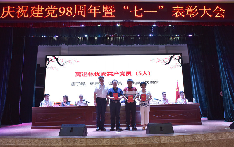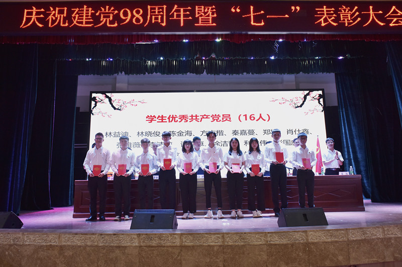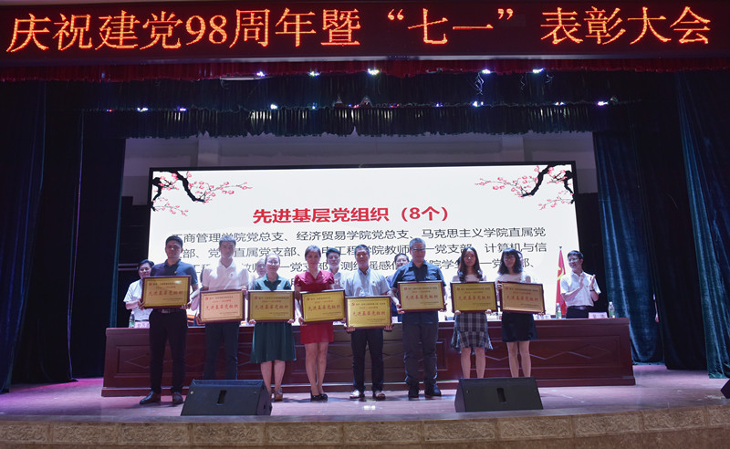2019年7月1日下午,我校在天河校区东区礼堂隆重举行庆祝建党98周年暨“七一”表彰大会,缅怀党的光辉历史,总结上学年学校党建工作成绩,表彰一年来涌现出来的先进基层党组织和优秀党员。学校党委书记汤才,党委副书记、校长何汉武,党委副书记、纪委书记夏韩辉,党委委员、副校长陈珊兴,党委委员、副校长赵红,党委委员、党委办公室(宣传部)主任黄雄志,党委委员、党委组织统战部部长甘乃添,党委委员、学校办公室主任吴浩出席会议,全体教职工党员、学生及离退休党员代表参加了此次会议。会议由何汉武同志主持。