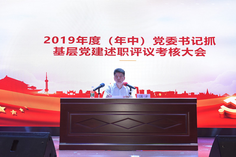 会上,汤才作2019年度(年中)抓基层党建工作述职报告。他从细悟深学,不断加强学习教育,提高政治站位;细照笃行,不断推进党的建设,增强党组织组织力;细作深耕,不断完善“党建+”体系,统领发展大局等三个方面总结了2019年上半年党建工作成绩和特色亮点,并对2018年度述职评议考核问题整改落实情况进行通报。