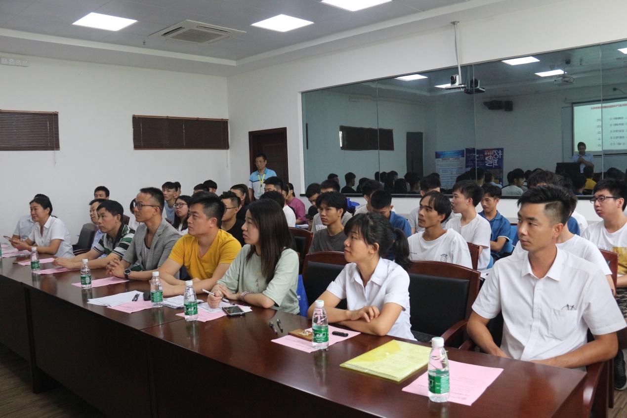 为积极响应国家“提高技能、提升就业”政策的号召,以实际行动推动职业教育发展,培养国家紧缺型汽车后市场人才,做好职业教育,促进就业的实际举措,2019年7月8日上午,汽车工程学院在明德楼一区216召开了第二期比亚迪精诚英才培育班人才双选会。会议由汽车工程学院办公室主任陈锐钊老师主持,汽车工程学院书记彭卫东,新能源汽车技术专业带头人郇锐铁,比亚迪汽车销售有限公司代表及比亚迪精诚英才班全体成员参加了人才双选会。