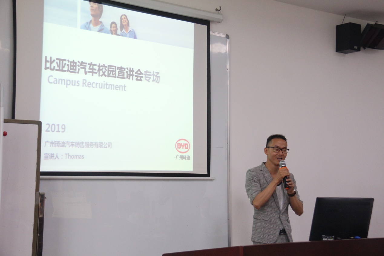 到场开展宣讲的企业有广州海恒科迪有限公司、广东欧亚特有限公司、广州琦迪有限公司、广州志翔有限公司、佛山键马有限公司、佛山禅迪有限公司、顺德东汽有限公司、广州鑫迪有限公司8家公司。宣讲会上,各企业代表分别介绍了企业基本情况、人才需求、学生发展情况等,并就学生提出的问题进行回答。