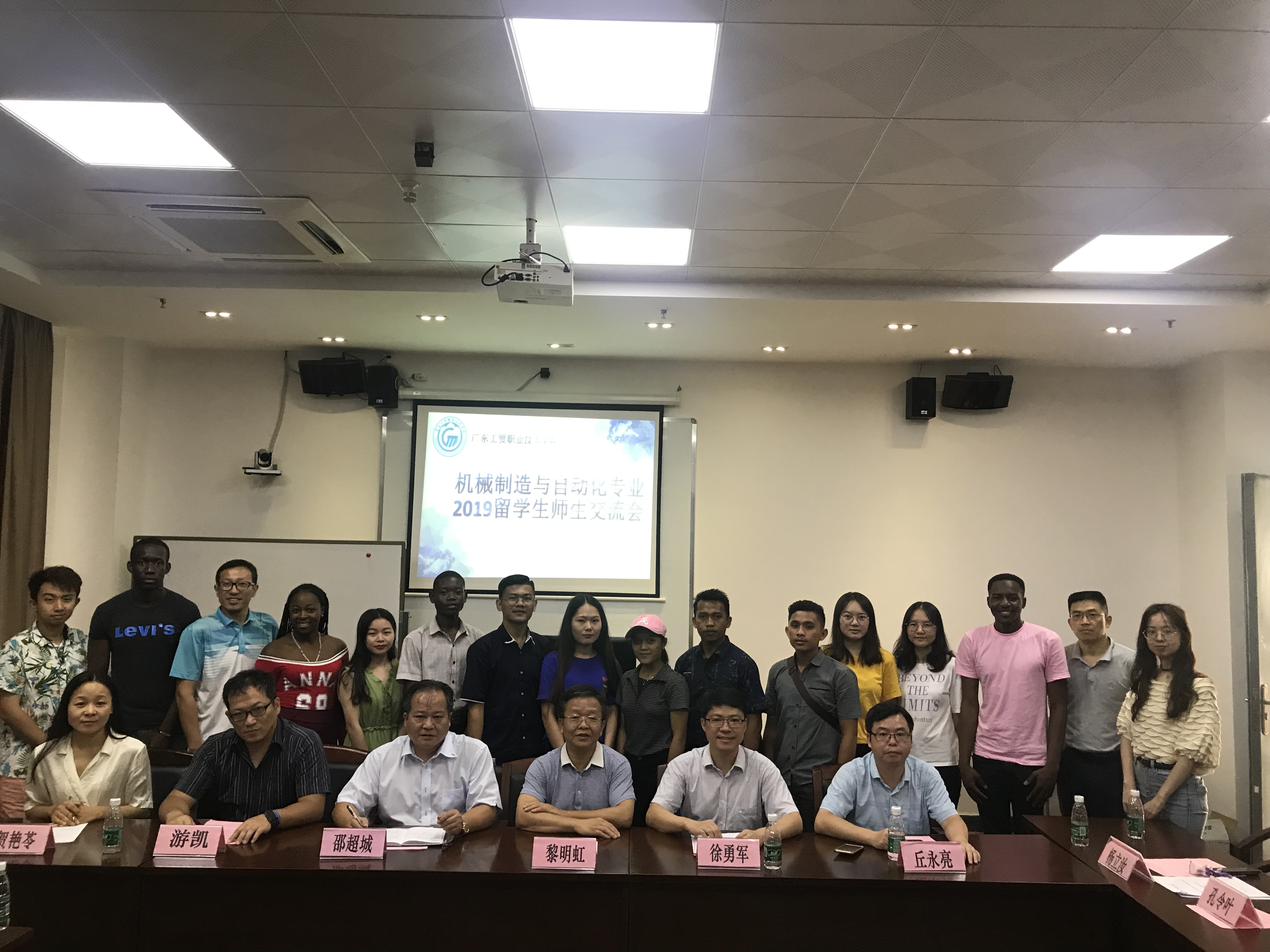 2019年7月9日上午,机电工程学院党总支书记邵超城,院长徐勇军,副院长丘永亮、游凯,机械制造与自动化专业带头人贺艳苓、留学生班主任孔令叶、分管辅导员以及机械制造与自动化专业的师生,与来自印度尼西亚和赞比亚的8名留学生,相聚白云校区,举行了留学生师生交流会,学校对外交流合作处黎明虹处长,杨立汝一同参加了交流活动。