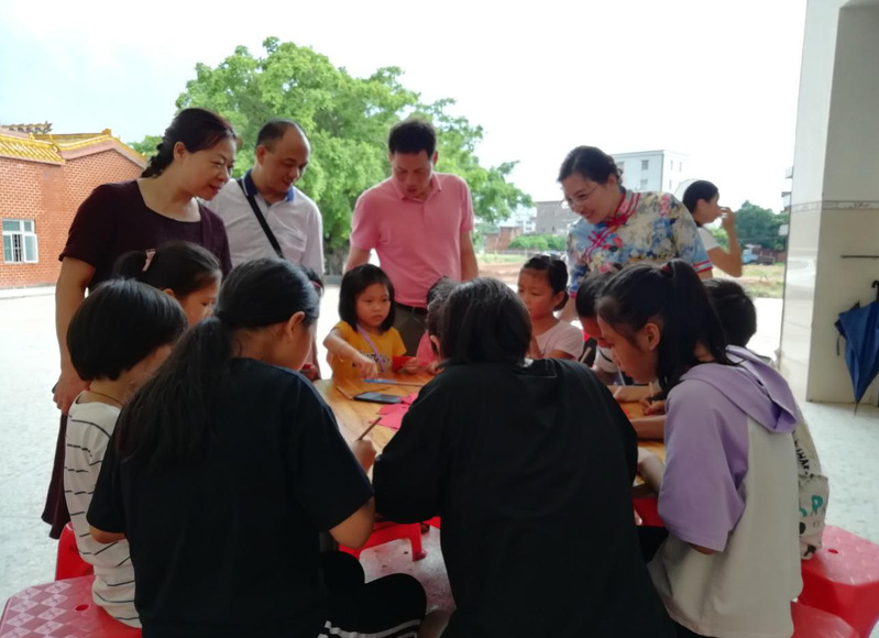 “扶贫先扶智”。职工志愿者、陈炜鑫队长和学生“三下乡”队伍共同开展了扶贫支教活动,与孩子们进行了游戏、折纸、画画等趣味展示活动,在欢歌笑语中与孩子们尽情绽放最美、最精彩的瞬间;职工志愿者给孩子们赠送了笔记本、学习文具等。学校工会和职工志愿者还看望了各二级学院学生“三下乡”队伍,与学生进行了亲切交流,给学生送上清凉解暑慰问品。