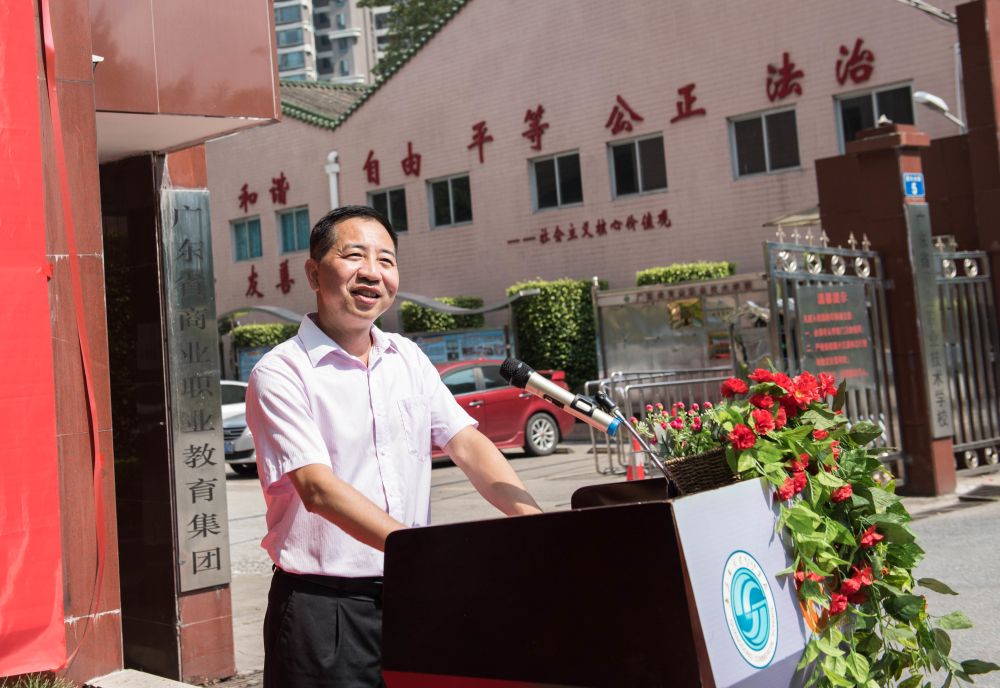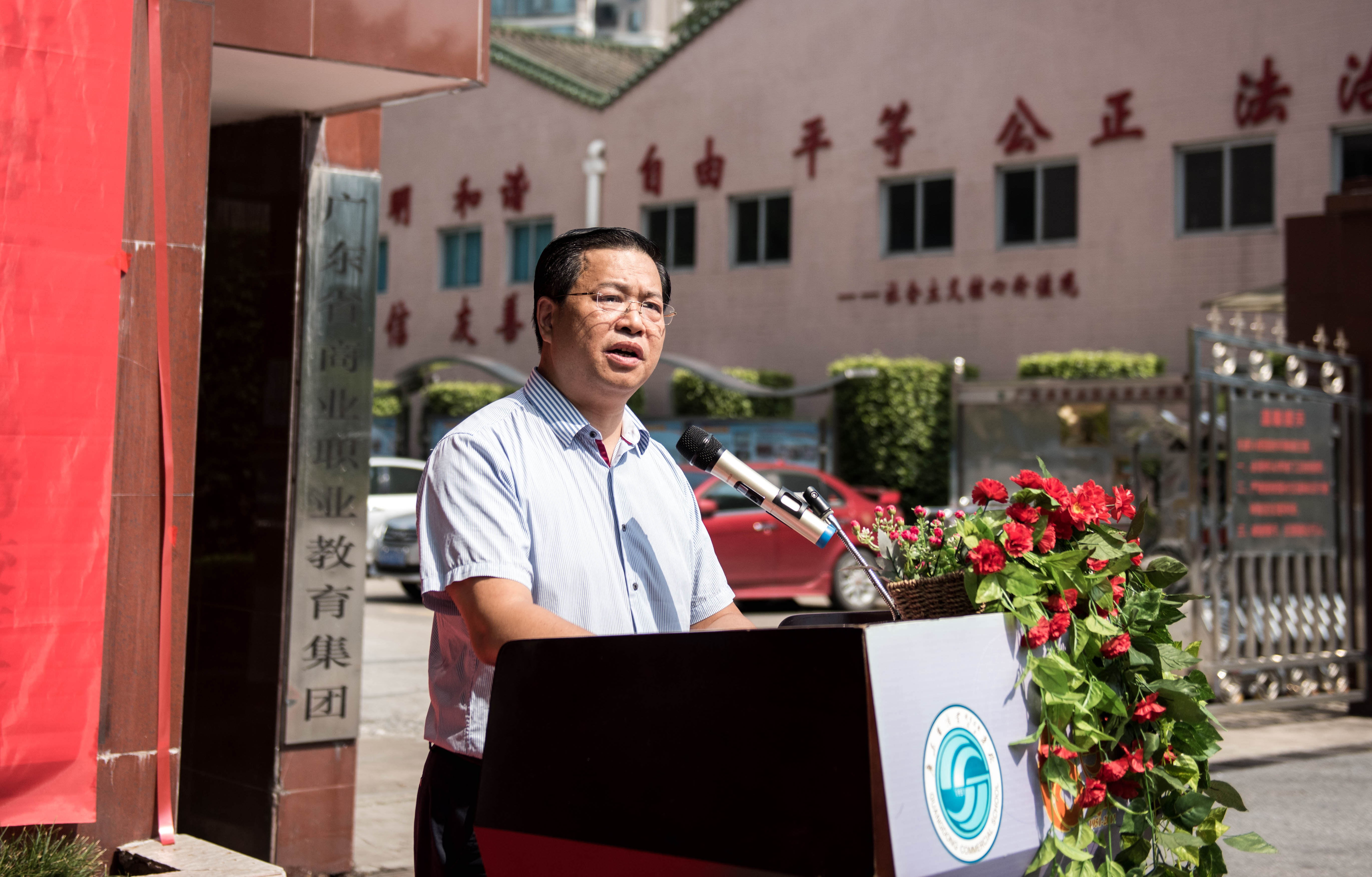 广东省商业职业技术学校校长杜汉清在揭牌仪式上致辞