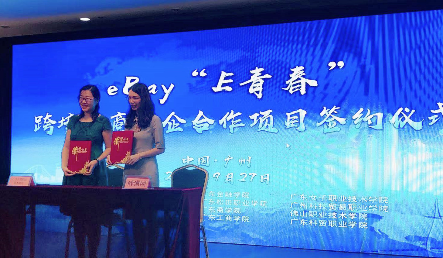 此次联盟大会的参会单位,既有高职院校,也有应用型本科和中职院校,更有来自粤港澳三地的跨境电商企业、以及跨境电商协会。本次大会上,联盟与eBay联合推出了“E青春”跨境电商创新创业项目。eBay“E青春”人才孵化优选服务商蜂俱网与13家联盟职业院校代表进行了“E青春”项目签约暨授牌仪式。经贸学院教师代表李文婷参与了本次签约仪式。