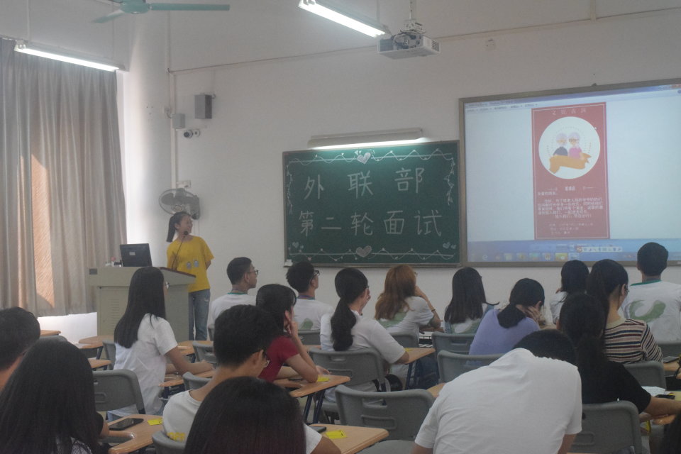 第二轮面试定于9月28日14:00—18:00、19:00—21:00在明德楼1区6层进行。此前,志愿者已提前以短信形式通知他们带上相应的作品和所需物品,并为其加油打气。第二轮的面试根据各个部门职能展开,更好地考验了新生的实际能力。