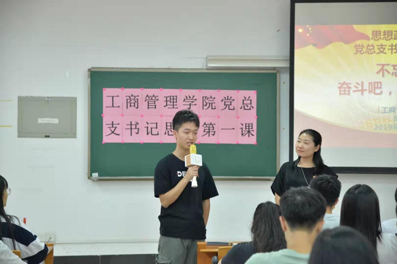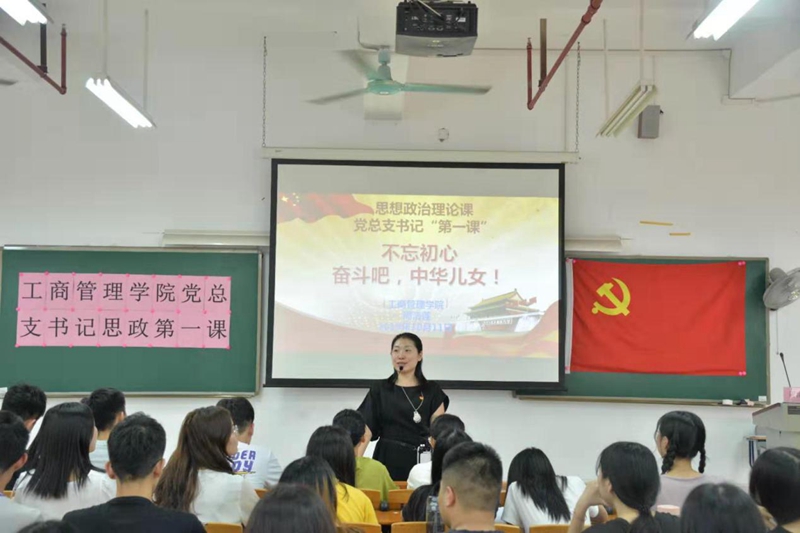 2019年10月11日下午四点,工商管理学院党总支书记思想政治理论课“第一课”在白云校区明德楼201开展,主讲人为工商管理学院党总支书记周清莲,参与人员为学院全体学生党员及团学干部。