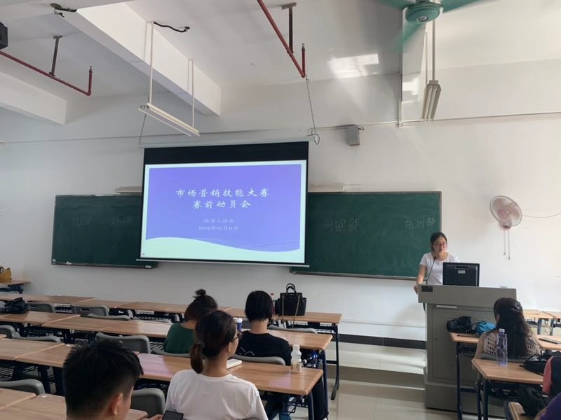 2019年10月11日中午,经济贸易学院市场营销专业教师廖文芳和黄卉老师在白云校区2-403开展了市场营销专业技能大赛赛前动员会。