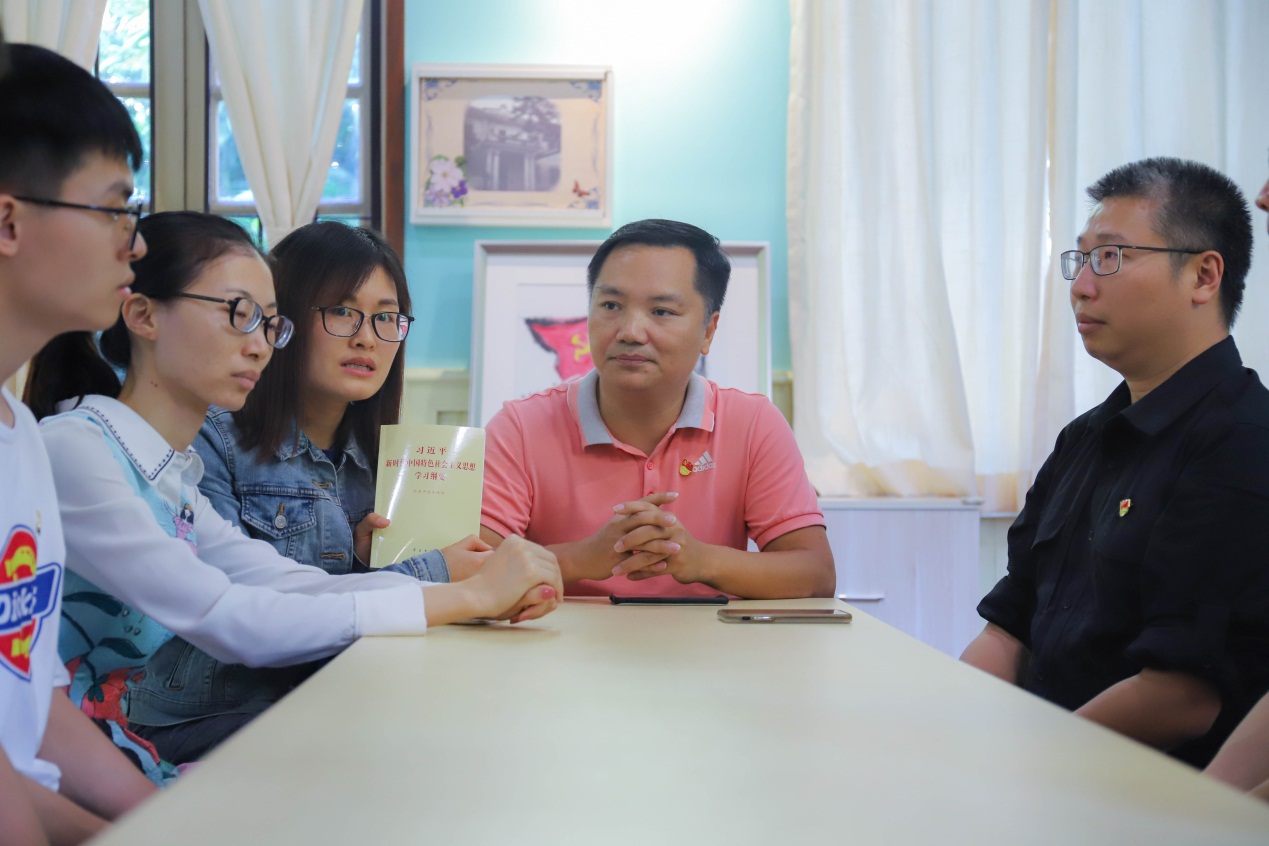俞雪娇带领党员同志一起学习