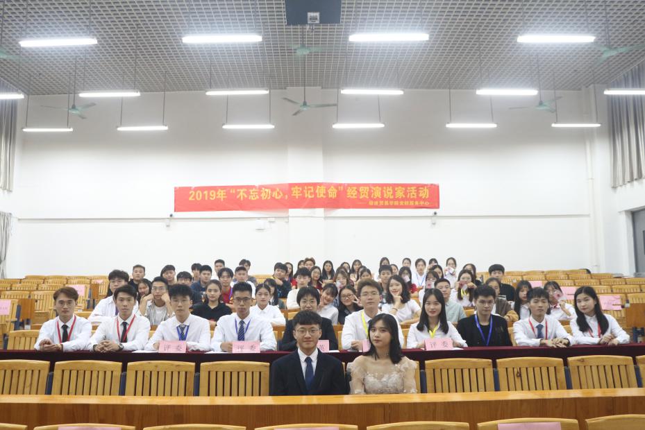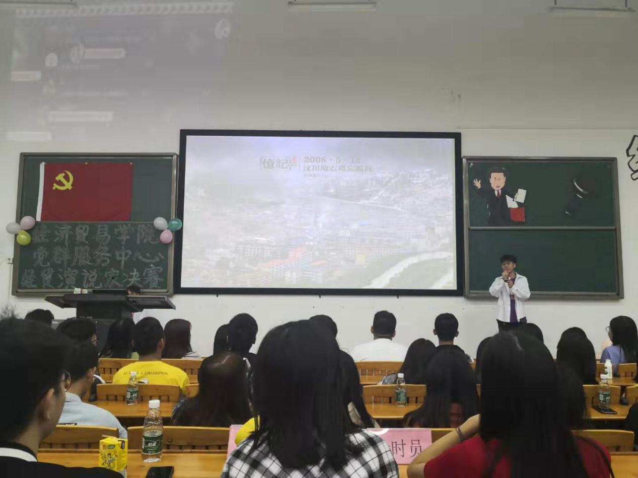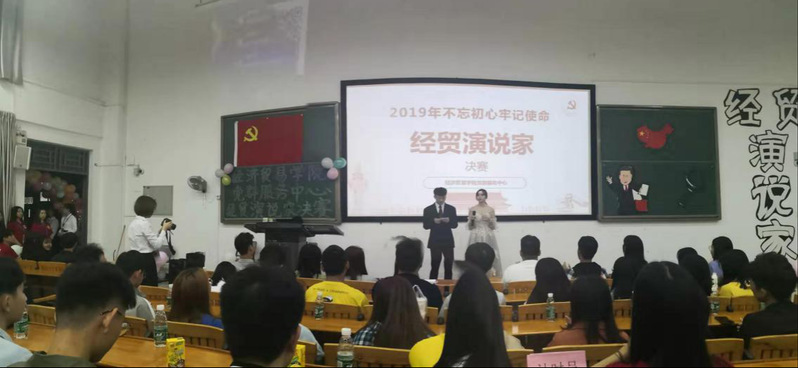 为学习贯彻党的十九大精神,培养“不忘初心、牢记使命”的新时代青年,营造爱党爱国的浓厚氛围,经济贸易学院党群服务中心于2019年10月29日,在明德楼2区306主办了经贸演说家比赛的决赛。经济贸易学院学生第一党支部书记吴海英、止默演讲协会代表、各学院党群服务中心的代表、经贸学院学生会、青协分会代表以及飞久音乐社代表参加了活动。