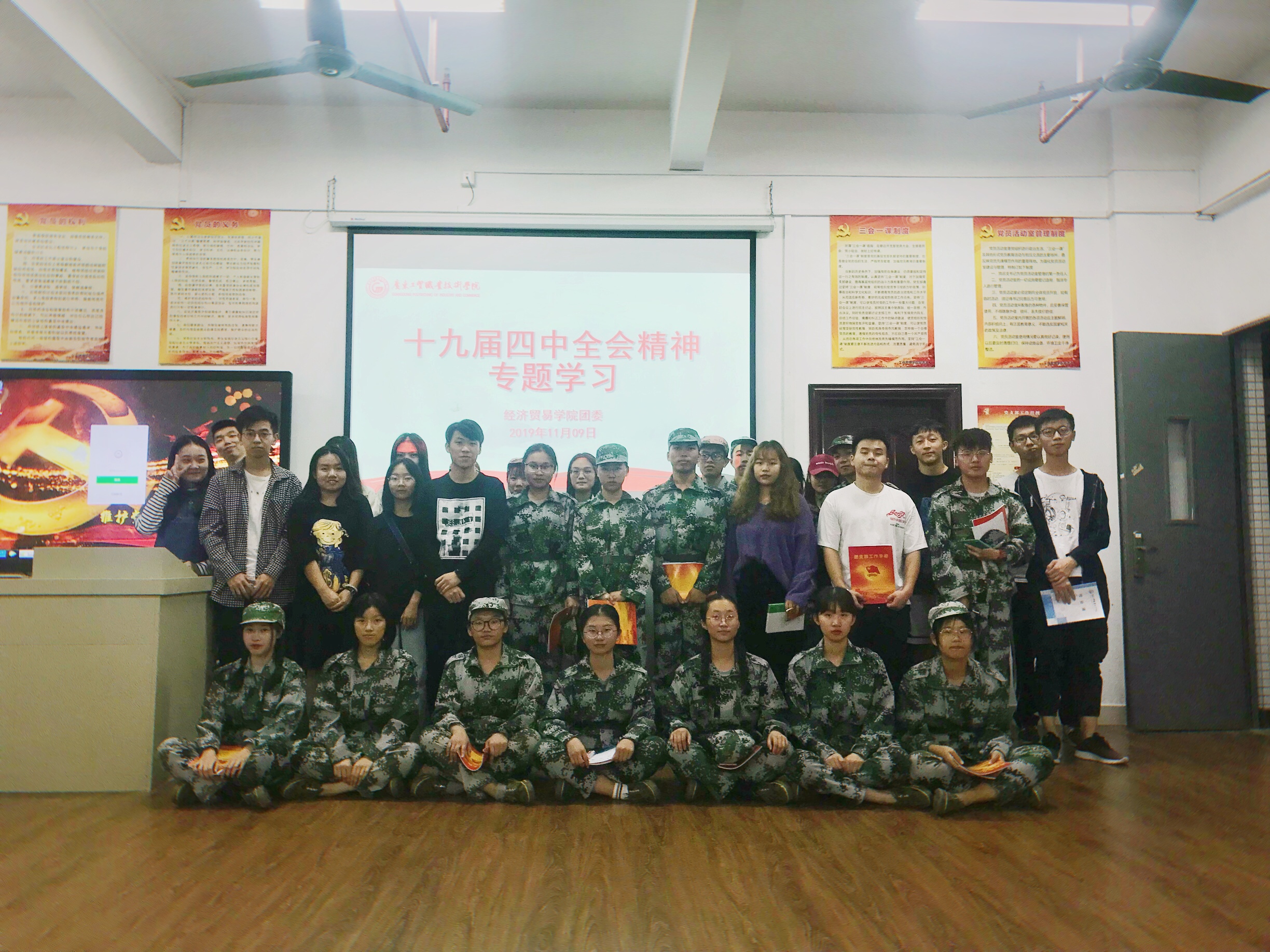 为营造浓厚的“三全育人”教育氛围,引导学生争当六有青年,践行社会主义核心价值观,进一步推进“不忘初心、牢记使命”主题教育到基层团组织,11月8日晚,经济贸易团委、学生会、各班级团支书代表在实训楼514会议室召开学习党的十九届四中全会精神专题会议。