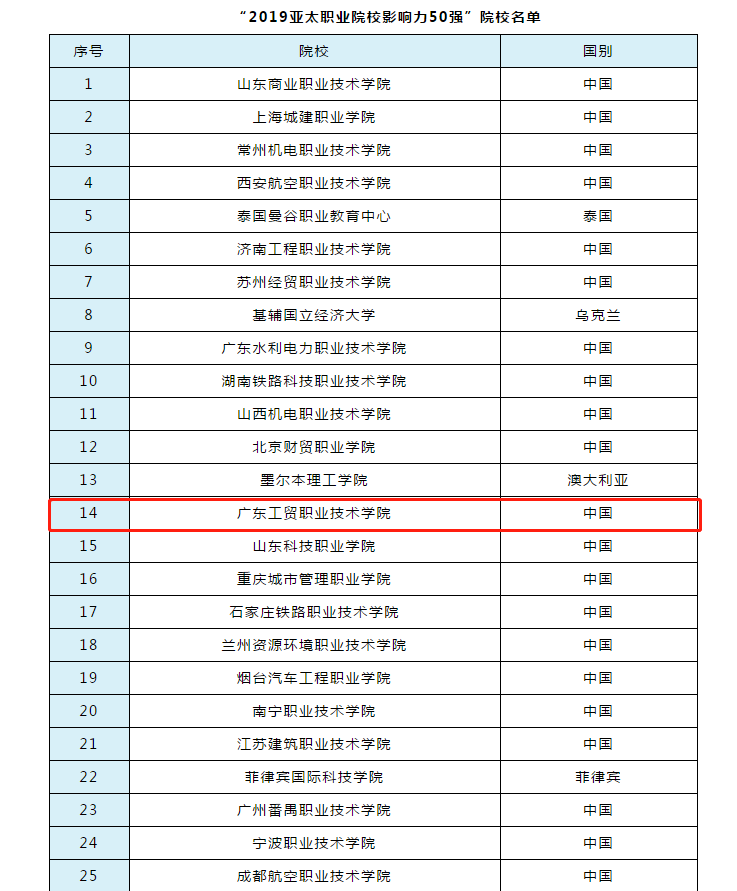 此次活动是为肯定和鼓励在亚太职业教育事业中有着突出贡献和国际影响的职业院校,促进亚洲乃至亚太地区的职业教育合作发展和人文交流而举行的表彰活动。他们在亚太国家和地区技术技能人才培养、服务行业产业转型升级和社会经济发展方面做出了突出的贡献;在国际合作和人文交流方面形成了良好的国际影响。经评选工作委员会初评、复评,共有10所亚太其他国家和地区职业院校,40所中国职业院校入选“2019亚太职业院校影响力50强”,获此殊荣。特别是中国职业院校为“一带一路”沿线国家职业教育发展贡献了中国经验、中国榜样和中国标准,在亚太地区形成了良好国际影响。