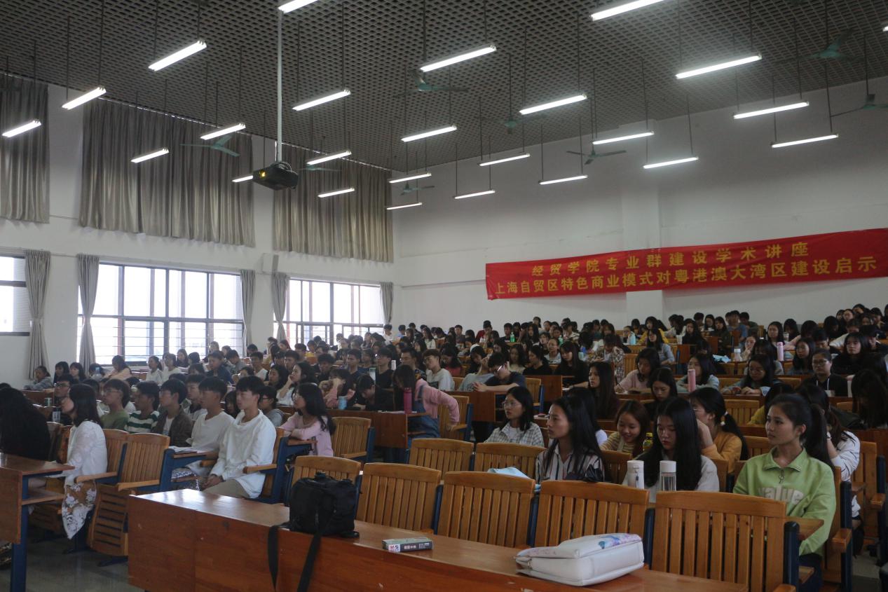 经济贸易学院于2019年12月4日下午,面向全院学生举办了一场精彩的有关专业群建设的学术讲座活动。来自上海外高桥集团股份有限公司营销部的副总经理崔姐博士/高级经济师,为经济贸易学院的师生分享了她自己的研究成果,就上海自贸区的特色商业模式,对粤港澳大湾区建设提出了建议和发展策略。经贸学院邱秀芳教授、副院长方洁教授、商贸系主任蒋晶副教授、及其他老师等出席了本次活动。