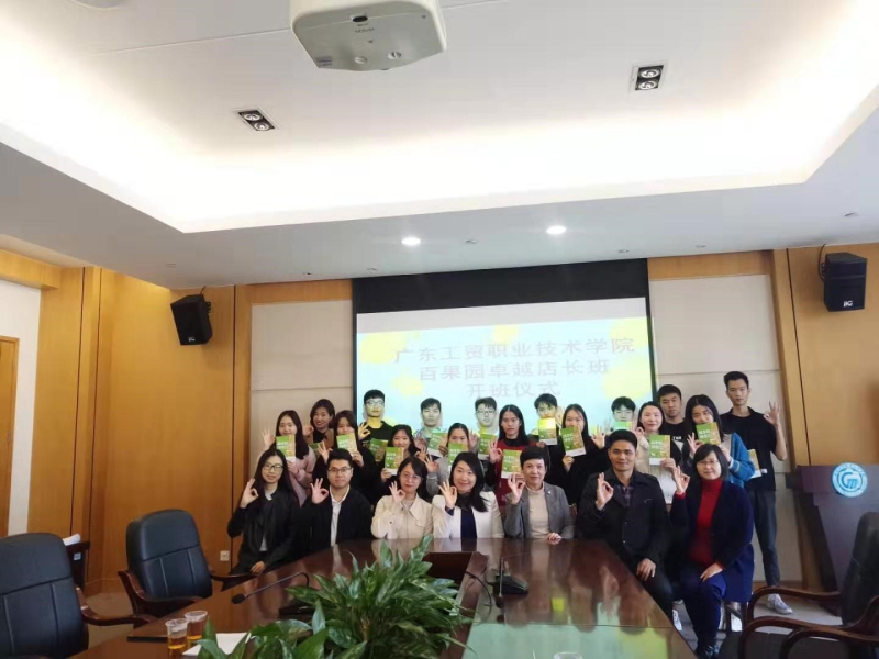 2019年12月26日,广东工贸工商管理学院百果园卓越店长班开班仪式在明德楼1区201中心会议室举行。参加此次开班仪式有工商管理学院党总支书记周清莲,副书记谢宏祥,工商管理学院副院长倪春丽,商业服务系主任何美贤、财税服务系主任邹建军、企业管理专业带头人袁年英、商务管理教师黄淑雯,以及百果园人力资源部副经理纪楚珊、人力资源部人事主管梁仲麟,参加讲座的学生共有16人。倪春丽担任本次仪式的主持并宣布卓越店长班开班仪式正式开始。