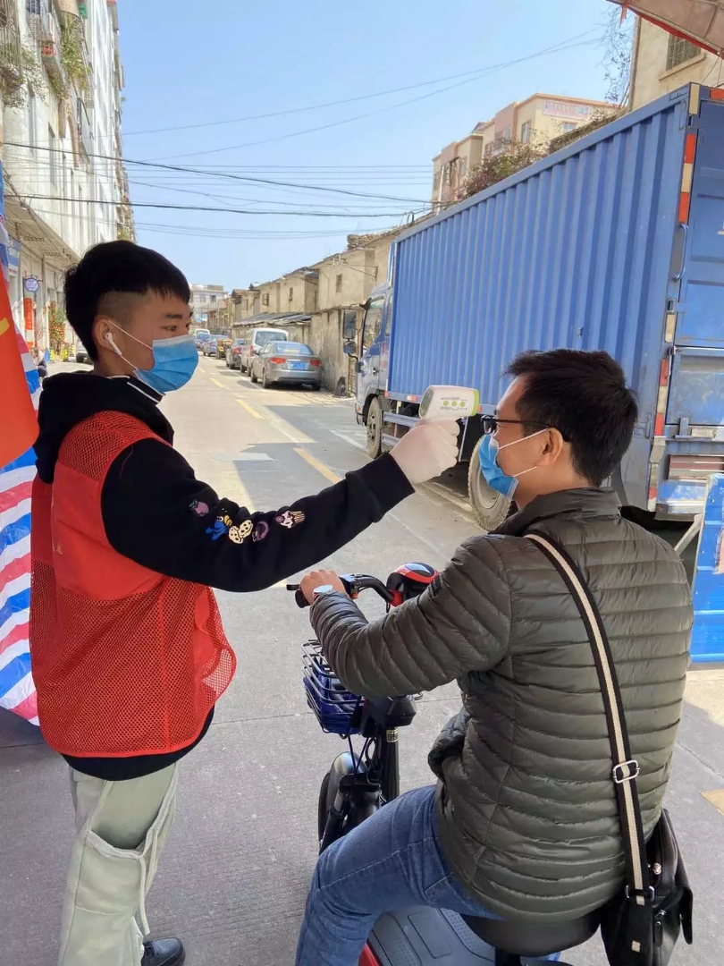 18工测4班的蔡炎桂,2019年11月份正式成为预备党员。在疫情暴发后便开始关注志愿活动,身为预备党员,他展现出党员的先锋模范作用,积极报名加入其中。从2月18号开始值班,每天下午三个小时的时间负责给过往村民测量体温是否正常。