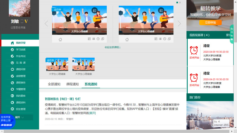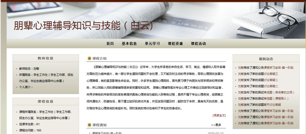 咨询中心刘敏老师开设的公选课《朋辈心理咨询知识与技能》和龚伟志老师的《积极心理学》自连日来,都在认真准备前四周的线上教学,参与学校组织的在线授课系统培训,学习优慕课、雨课堂、智慧树等网络教学平台的使用,目前已完成各项课程准备工作。