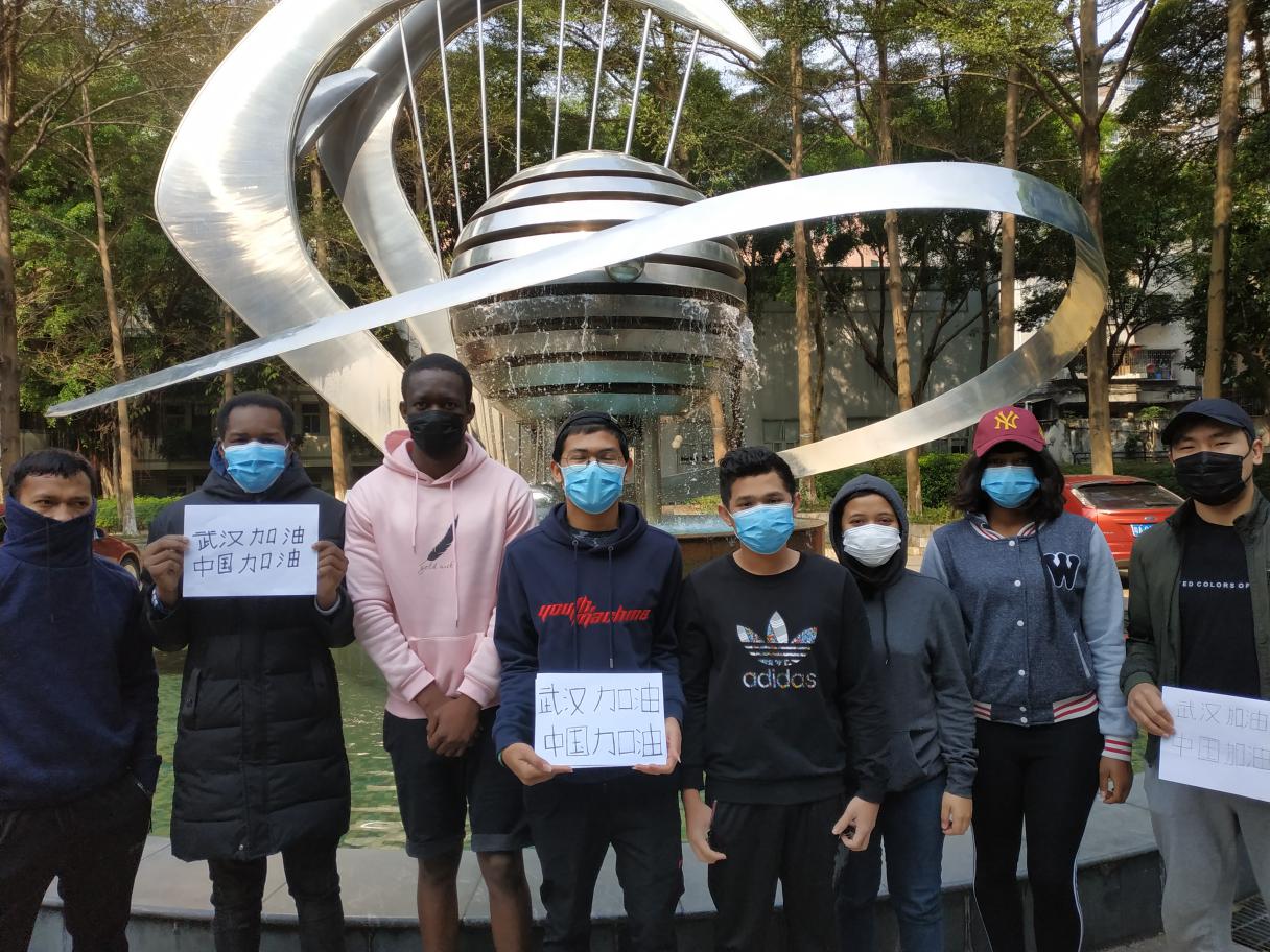 2019级机械制造与自动化国际班,来自赞比亚、印度尼西亚、吉尔吉斯斯坦等9名留学生,用最简单又真挚的话语,表露心迹,带着口罩,举着纸板,眼神里透露着对中国的关注,他们用最质朴的行为为中国加油,为武汉加油。 “We are very grateful for the school's care and support for us during this period. We also believe that with concerted efforts, we will soon overcome the epidemic.”“武汉加油!中国加油!”自这群留学生学汉字以来,再也没有比这次一笔一划写出的汉字更加用心用情了。