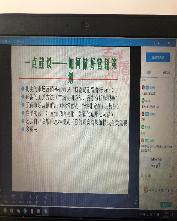 陈中明:网络直播对于老师和学生都是非常特别的教学体验,这周网课给我最大的感触是要多和学生互动,提升他们的注意力,真正参与到课程学习中来。
